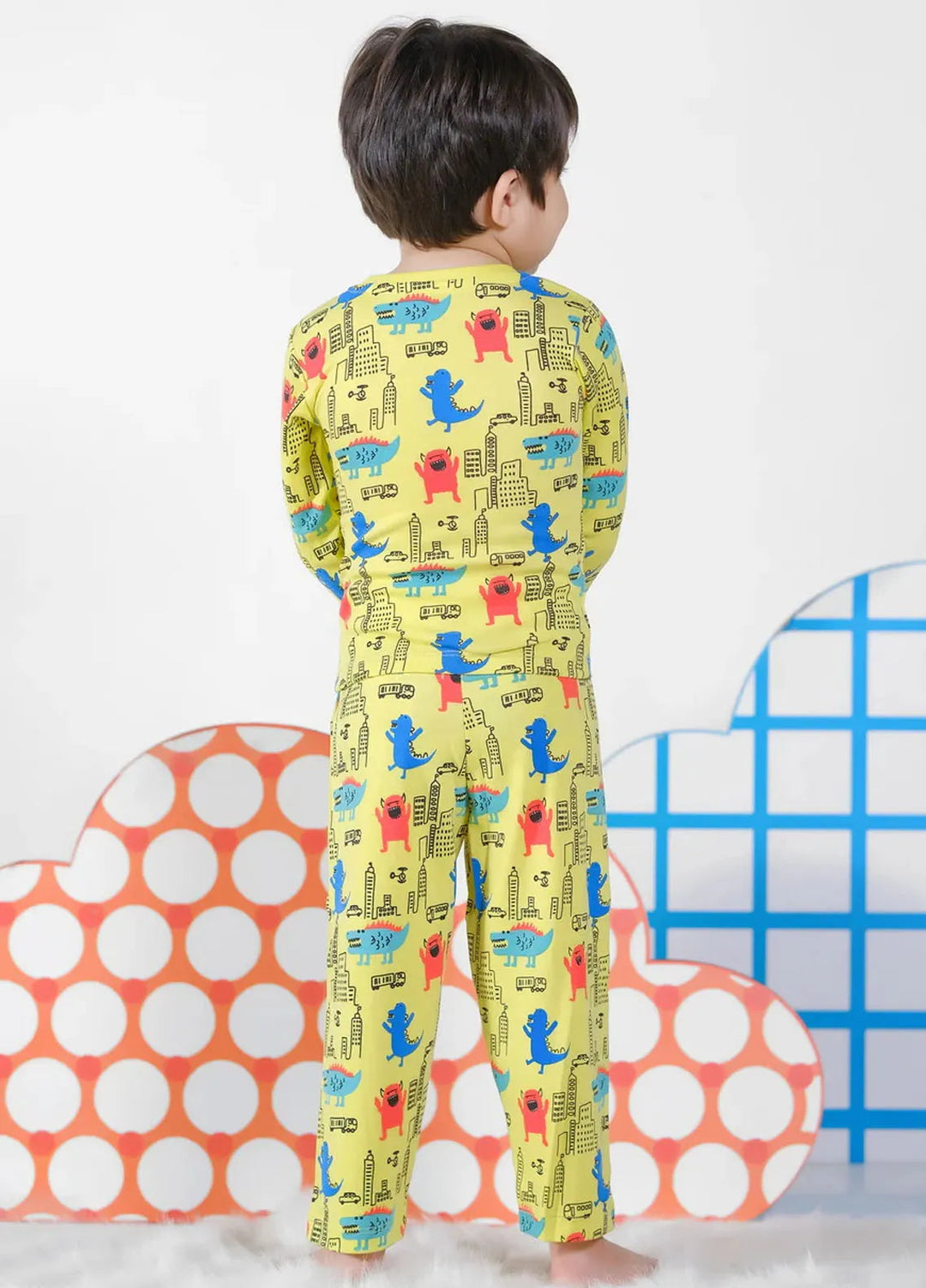Baby Nest Pret Casual Night Suit Dinosaur-Yellow