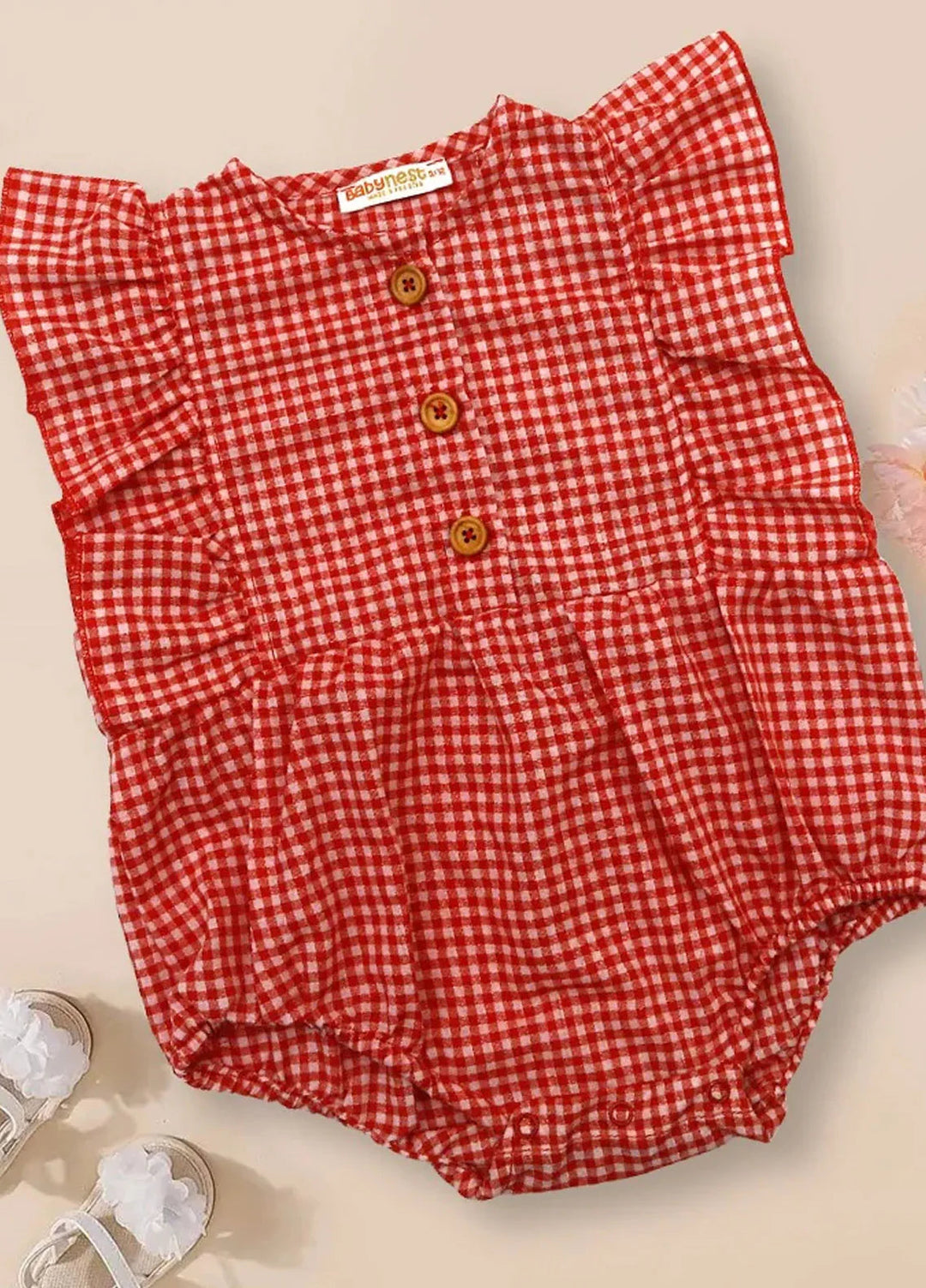 Baby Nest Casual Onesie Cherry Red Check Ruffle Onesie