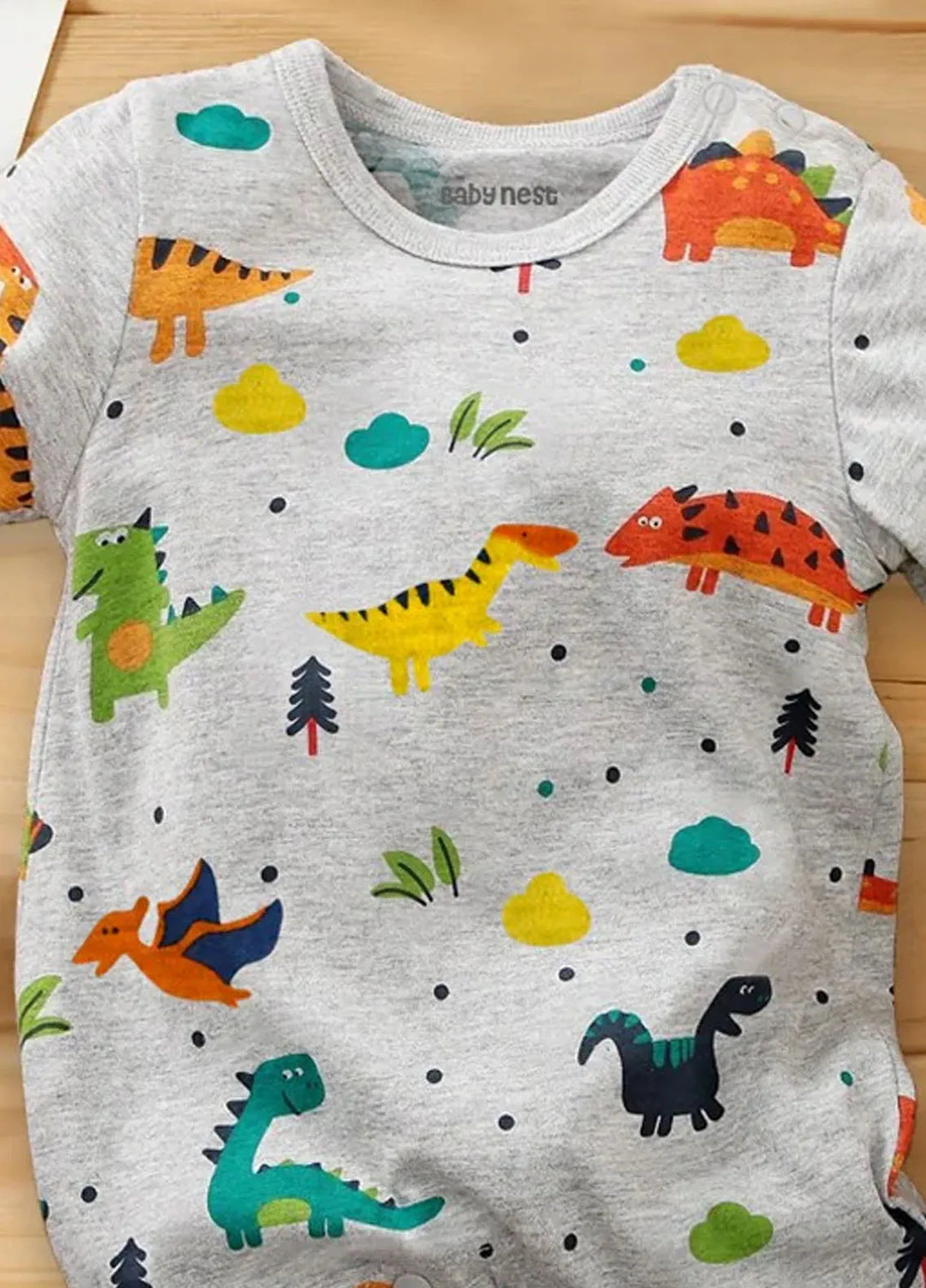 Baby Nest Casual Romper Grey Dinosaur Half Romper