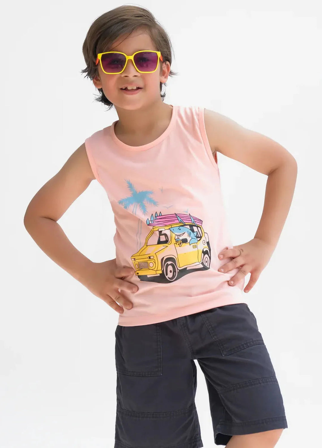 Baby Nest Boys Sando Riding Shark Light Pink
