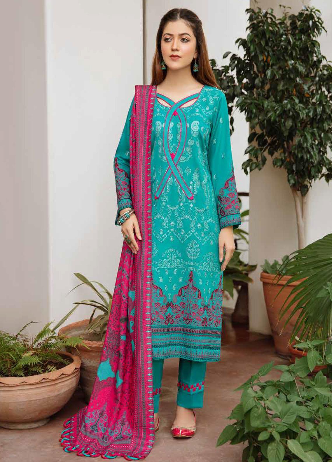 Banafsheh Embroidered Silk Karandi Suits Unstitched 3 Piece BF21PK BNK-06 - Winter Collection
