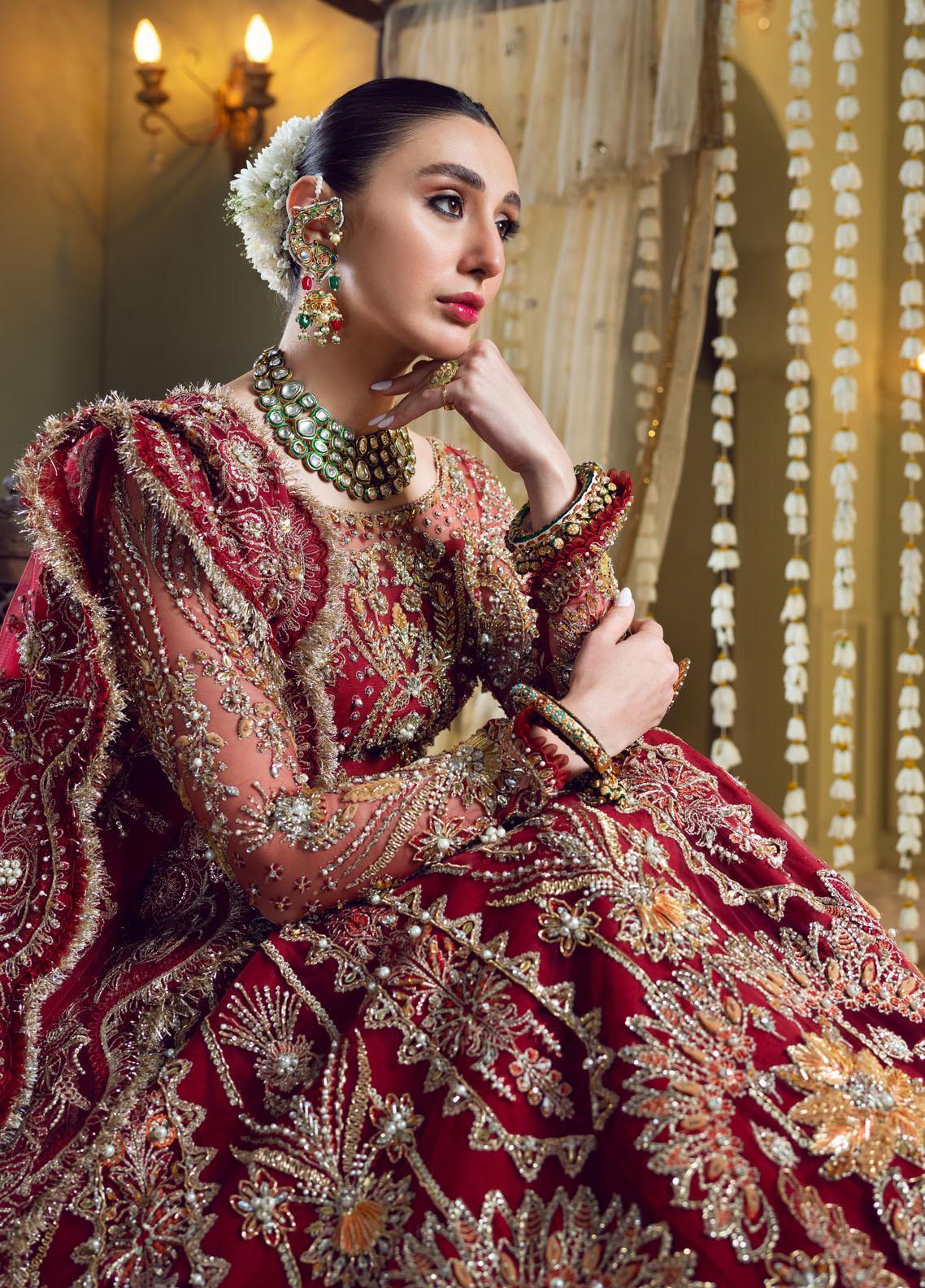 Maria Minahil Luxury Pret Net 3 Piece Dress MRM23JM MNF-02 Sohana Red