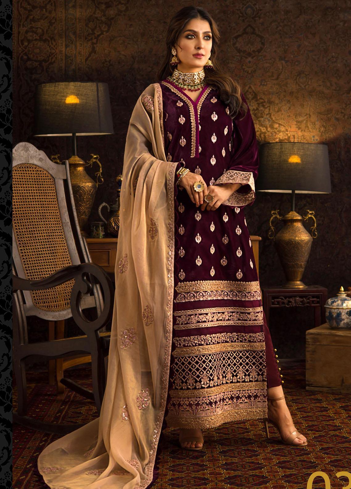 Zainab Chottani Embroidered Velvet Suits Unstitched 3 Piece ZC21FW 03 Dilara - Winter Collection