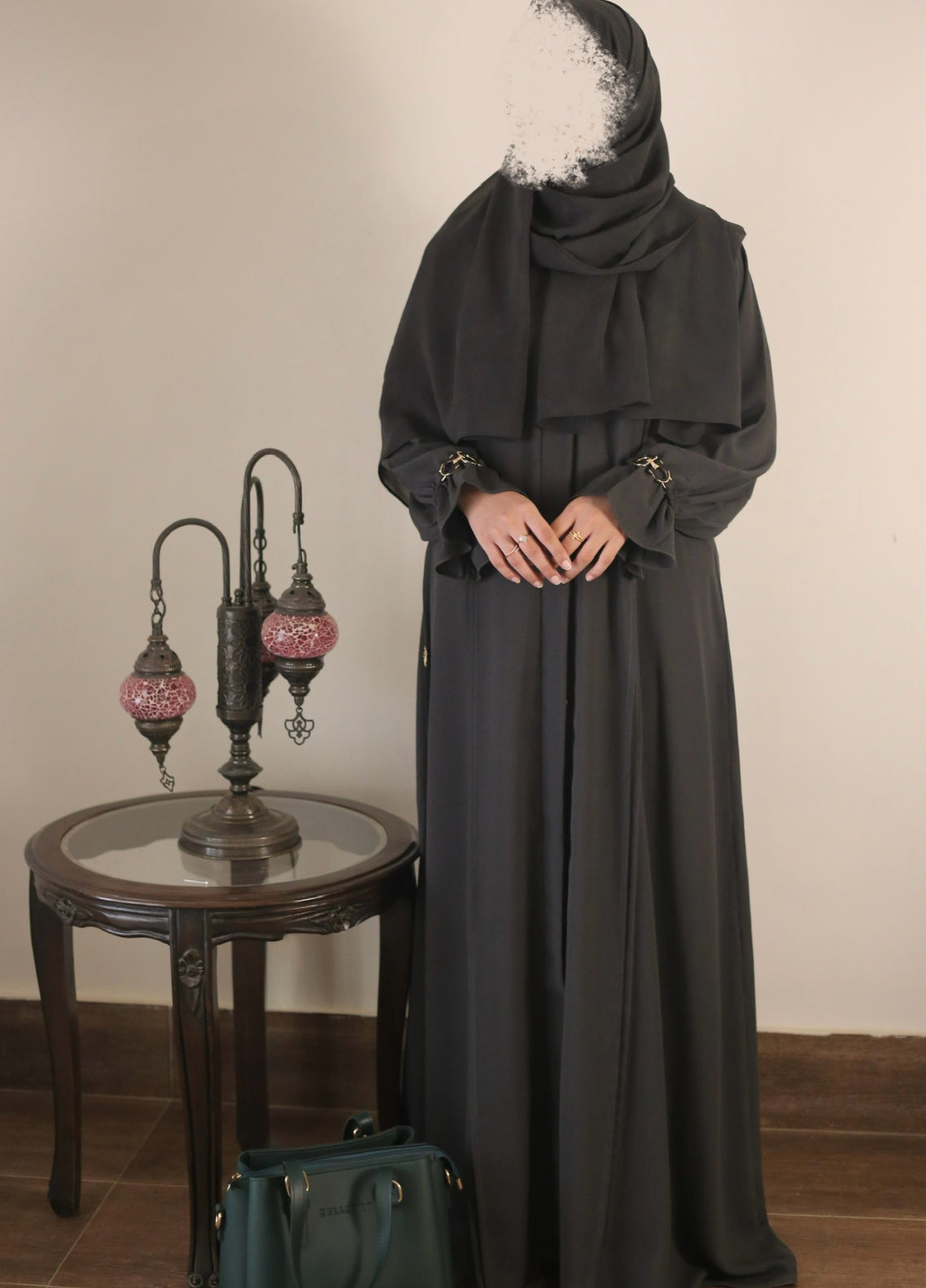 Bibayas Pret Plain Georgette 2 Piece Ash Abaya