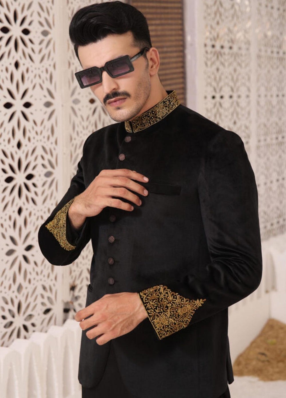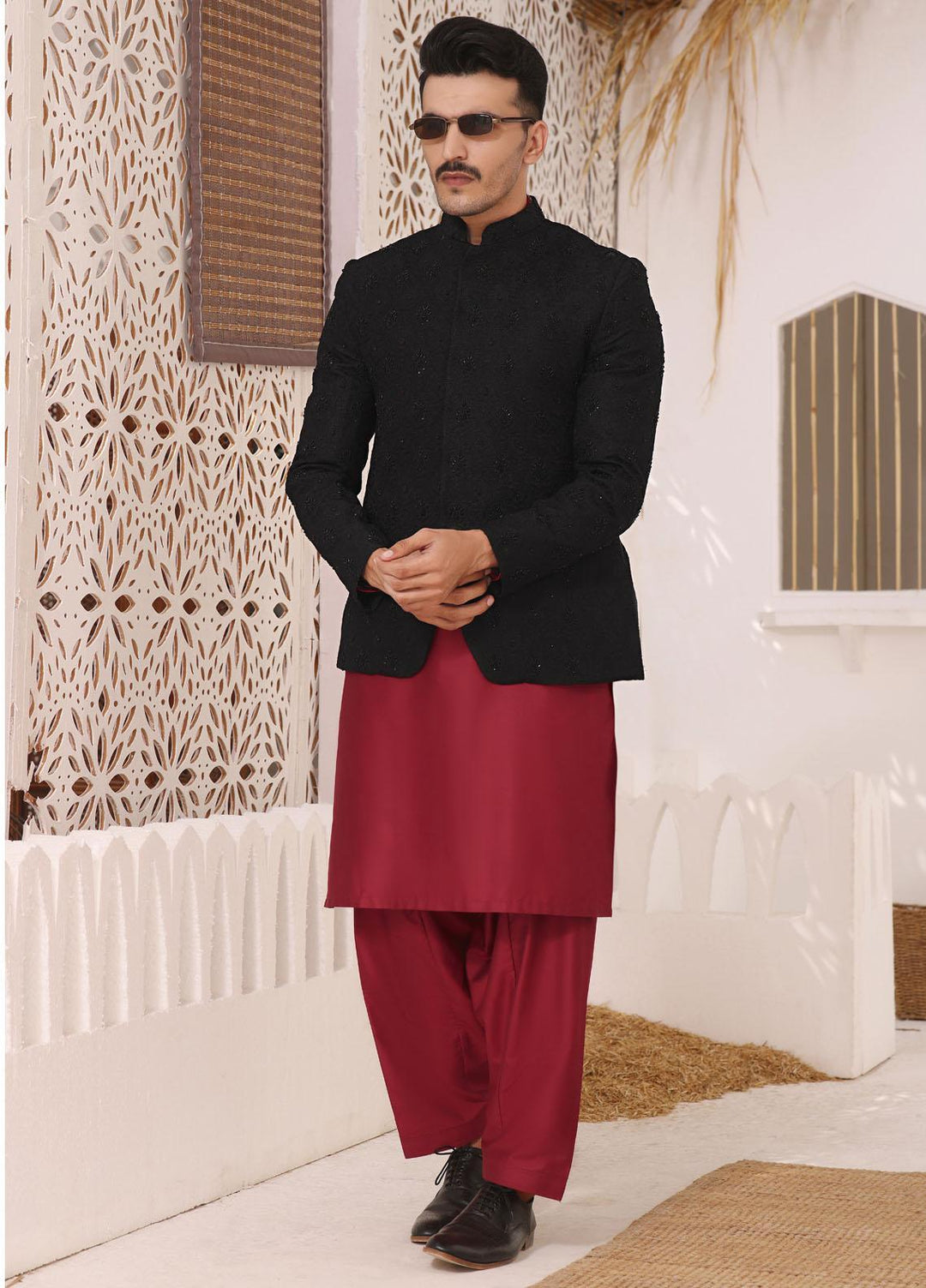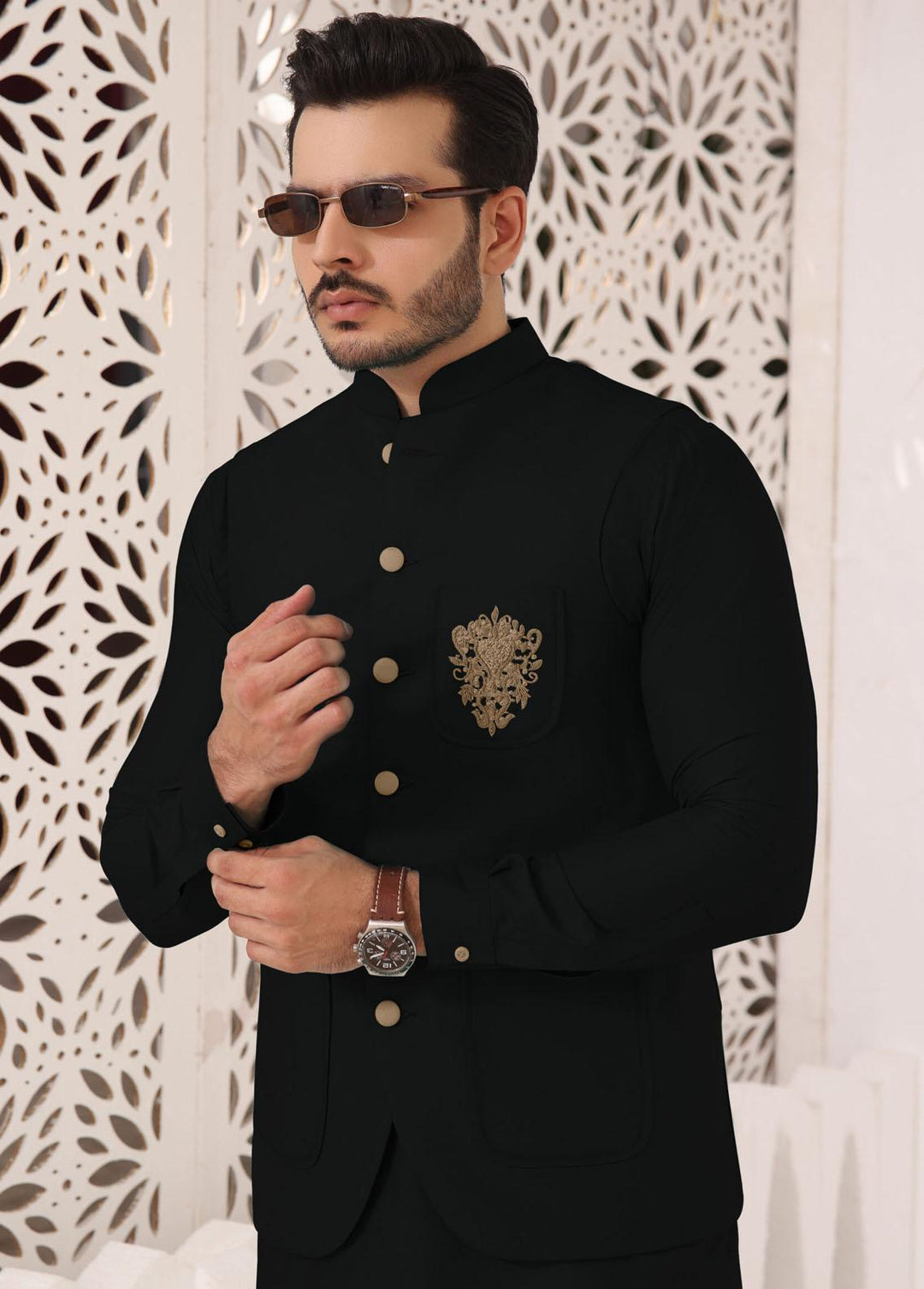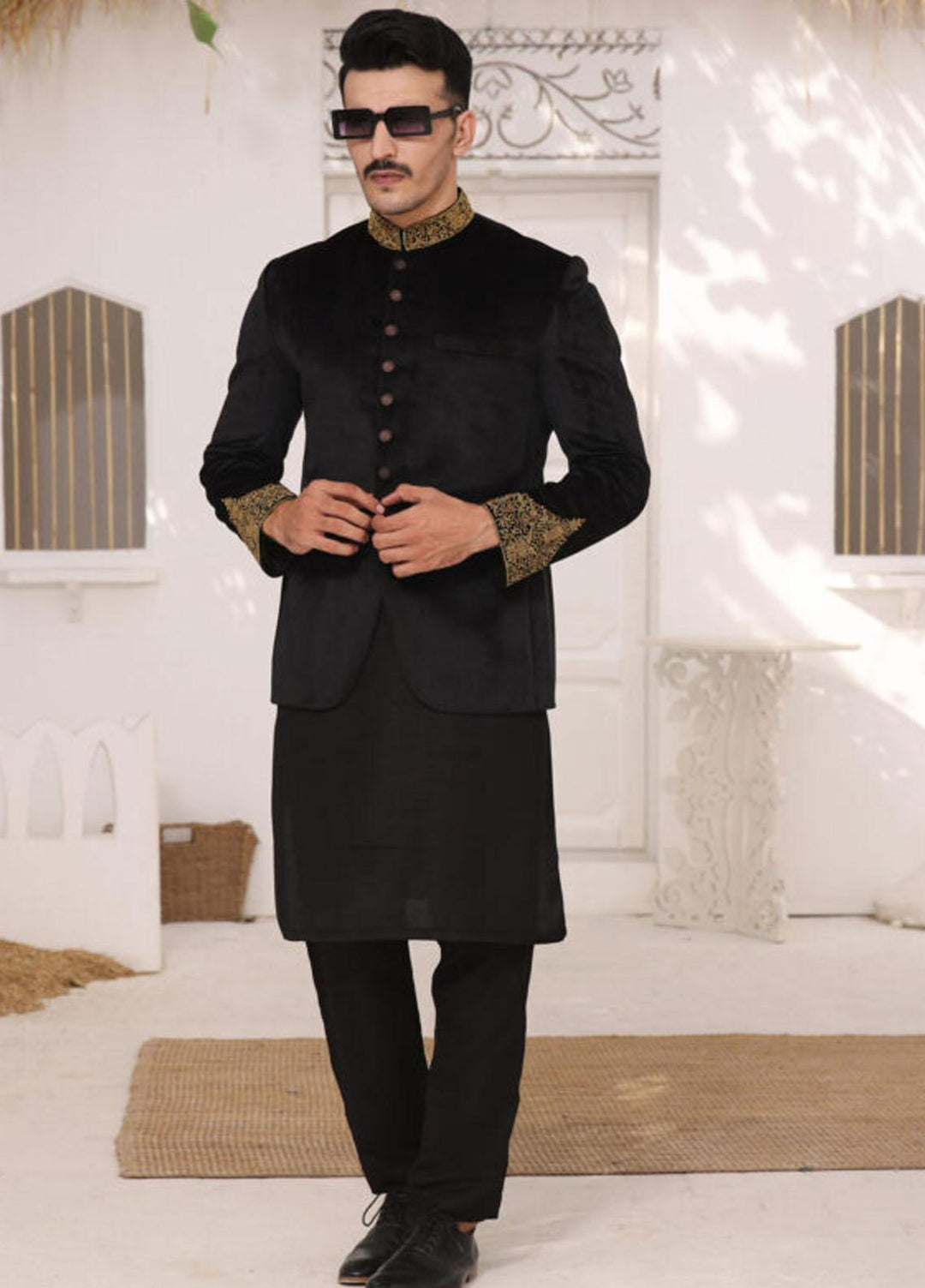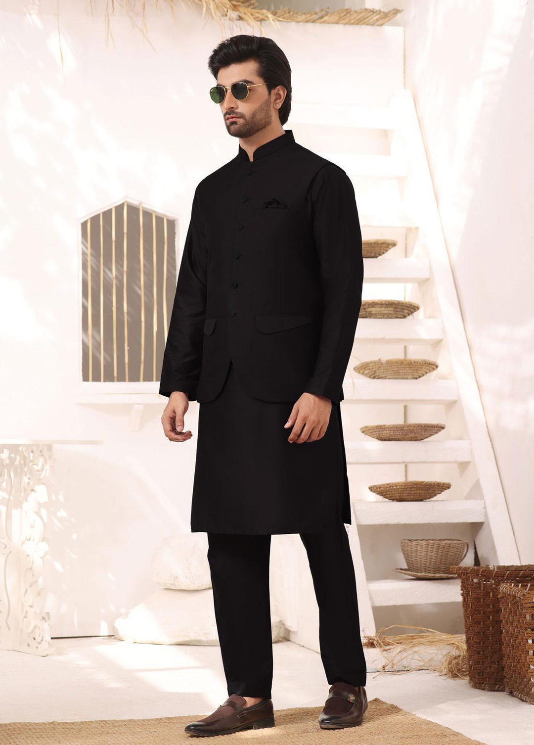 Bin Musab Raw Silk Formal 3 Piece Suit for Men - BM-000036 Ford Black