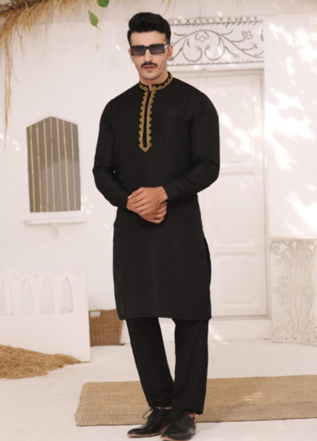Bin Musab Raw Silk Formal Men Kurta Pajama - BM-000006 Ebony Black