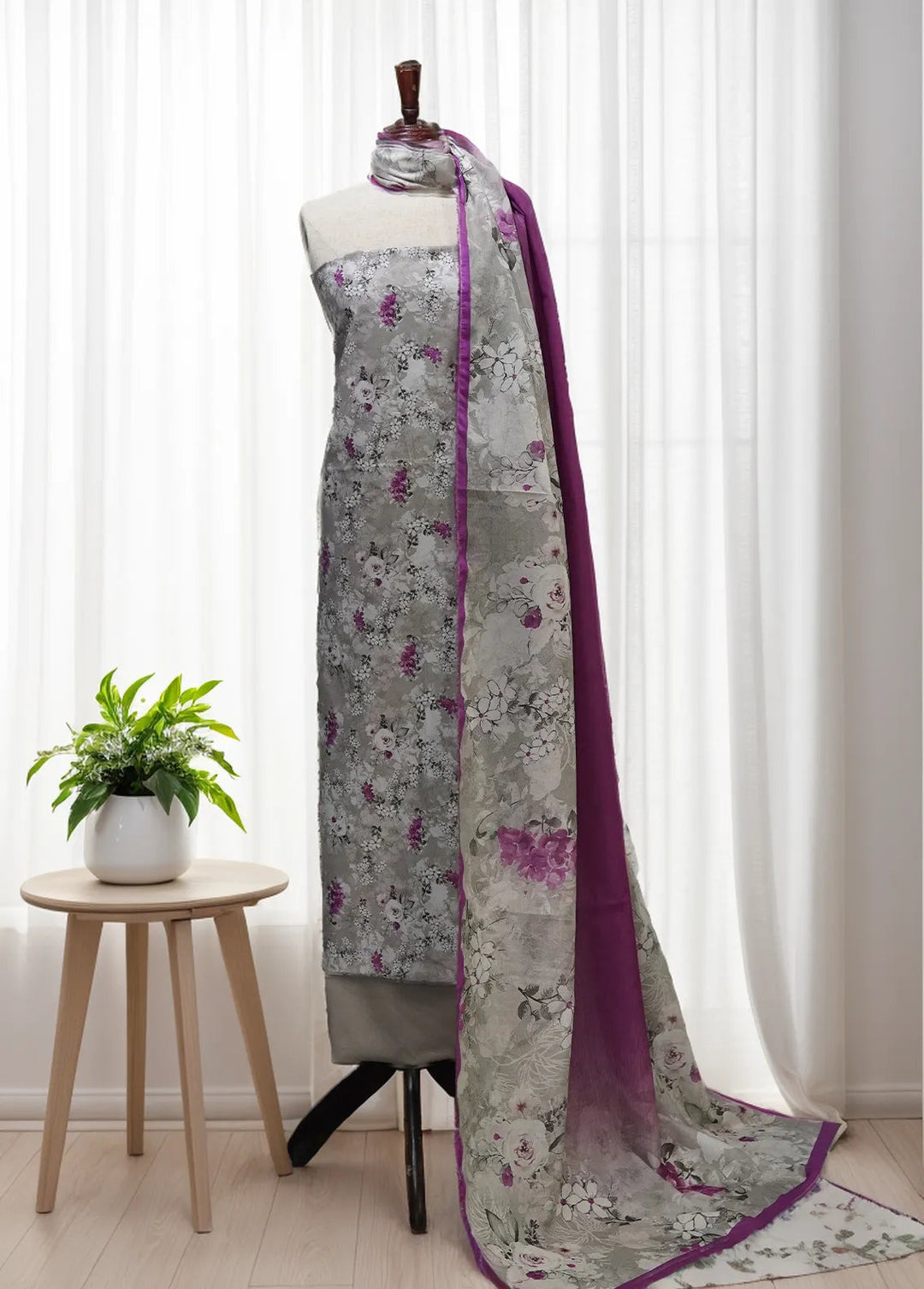 Digital Print By Bin Saeed Printed Lawn Suit Unstitched 3 Piece BN24F Gray - Summer Collection