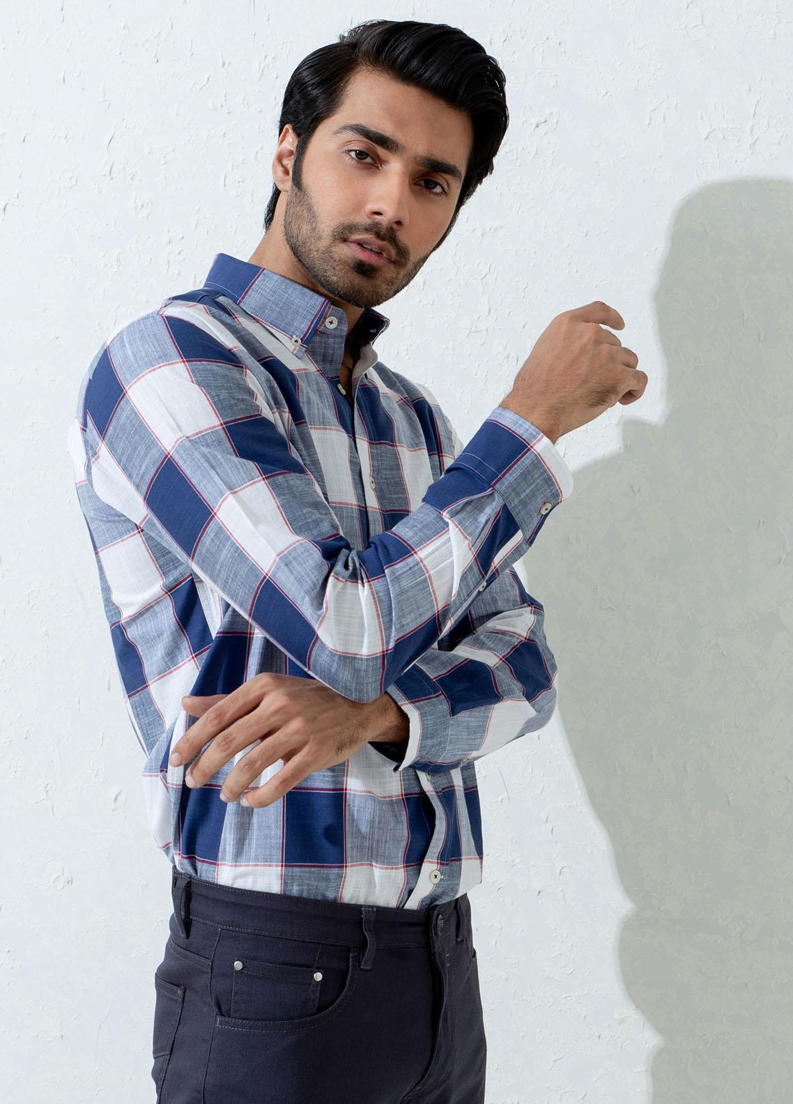 Buy Brumano Cotton Casual Shirts for Men - Blue & White Slub Textured Checkered "from Sanaulla Online Store. We have complete Shirts Range of Brumano.