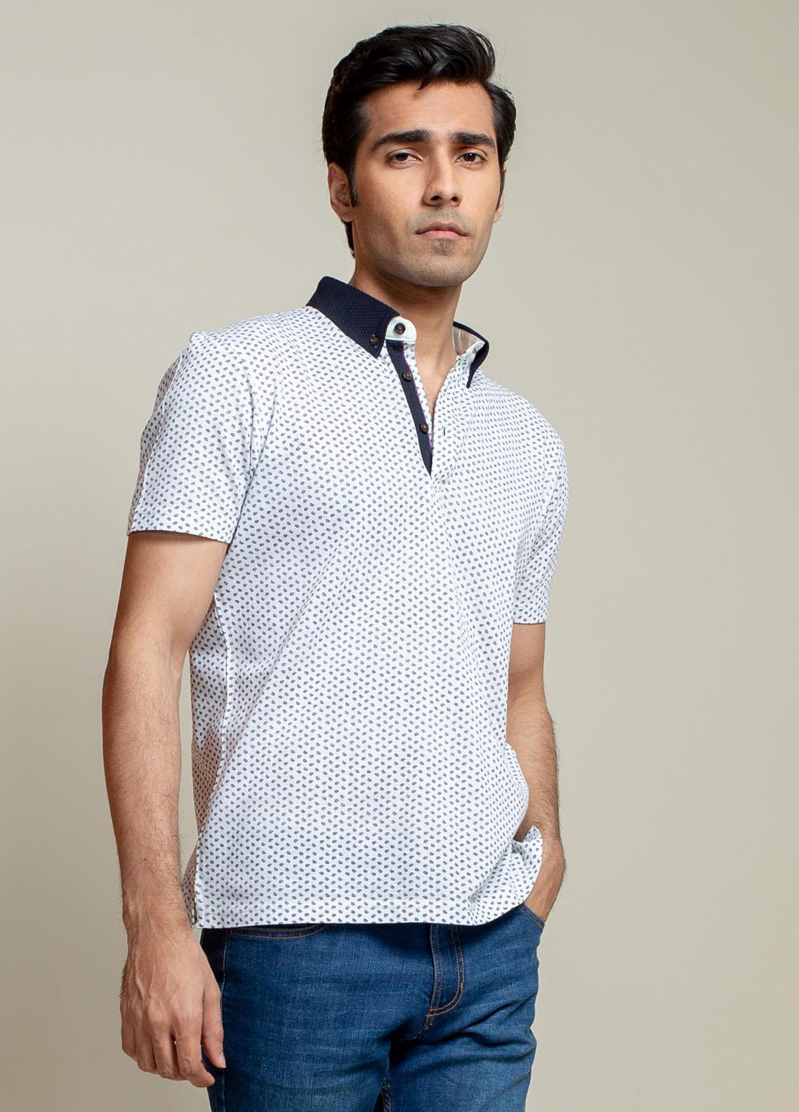 Buy Brumano Cotton Polo Men T-Shirts - White Printed Polo Shirt With Contrasting Collar "from Sanaulla Online Store. We have complete Shirts Range of Brumano with us.