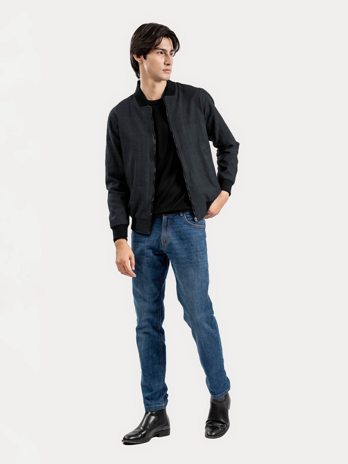 Elevate your casual look with this grey herringbone bomber jacket. Made from indigo-dyed fabric in a herringbone weave. This modern jacket features bomber collar & the same fabric elbow patch for a casual touch. Perfetct for layering over tees or jumpers