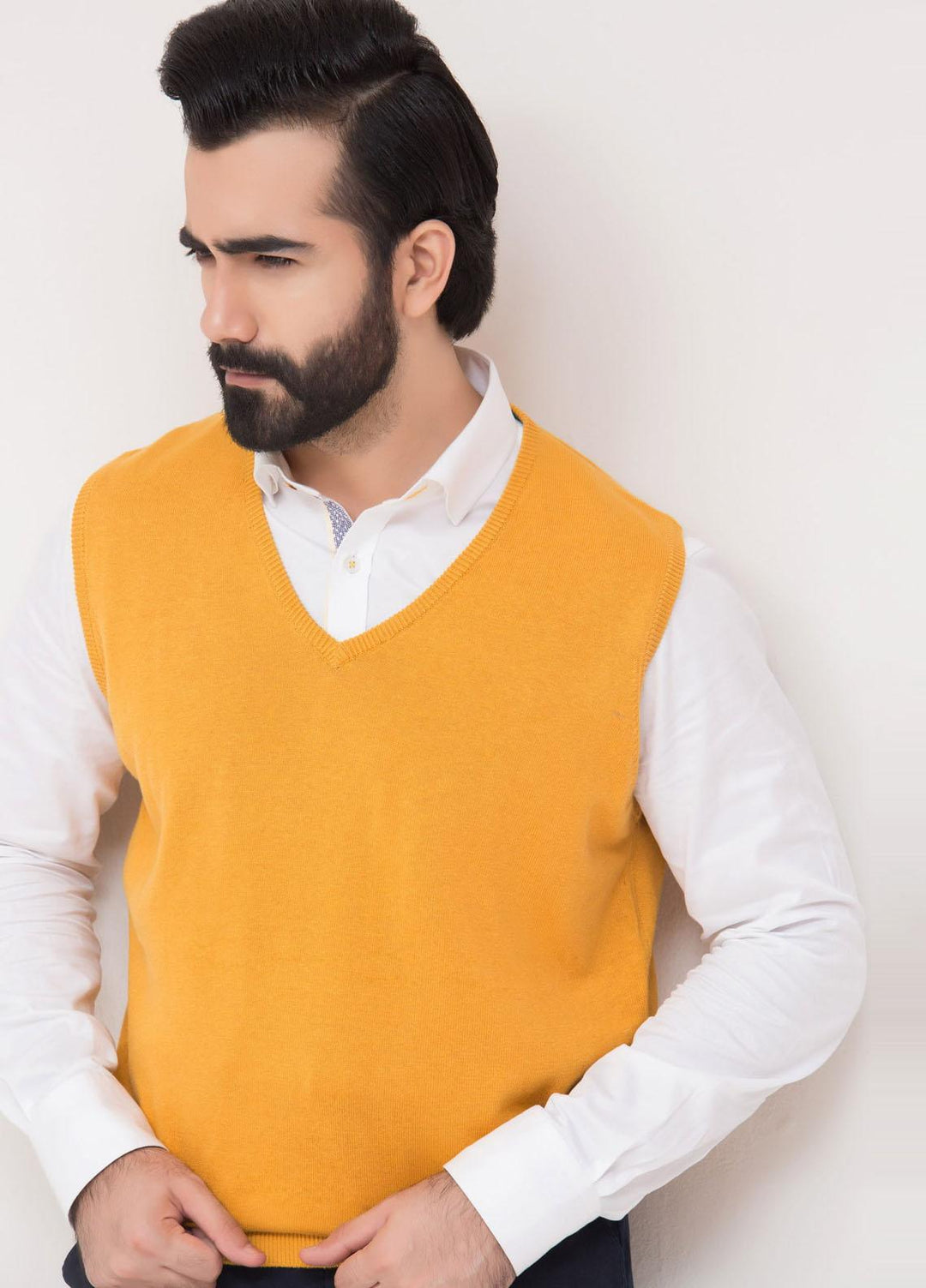 Brumano Cotton Casual Sweaters for Mens - Yellow V-Neck Sweater