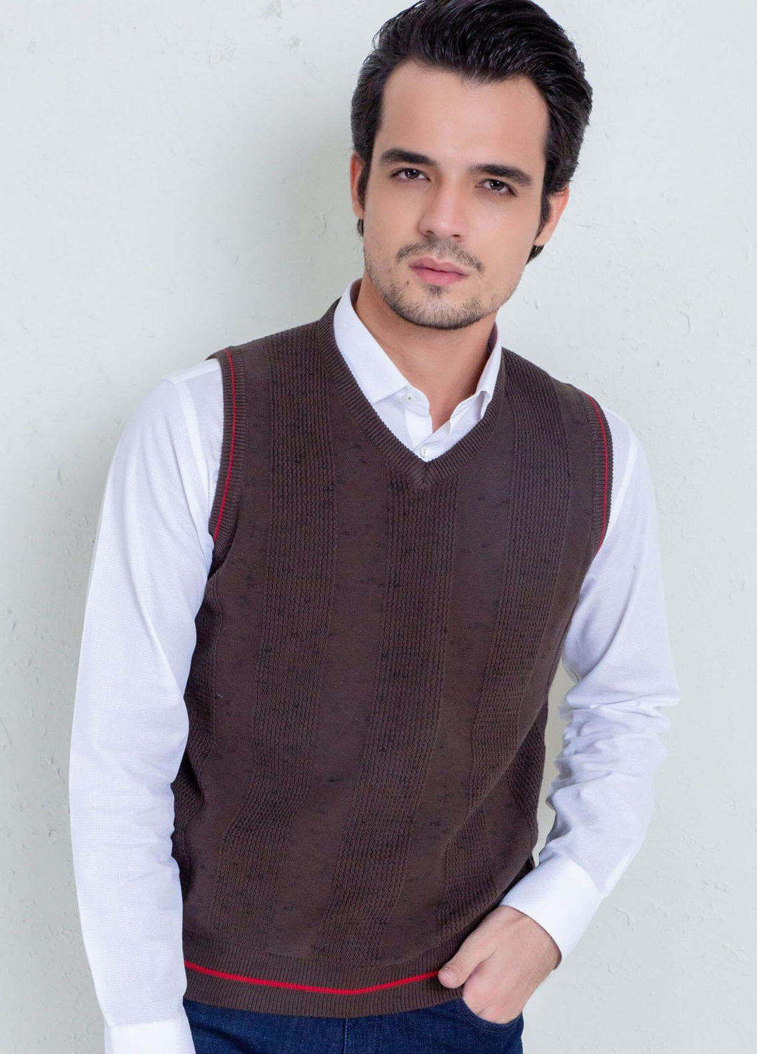 Brumano Cotton Casual Sweaters for Mens - Brown Textured Sleeveless Sweater