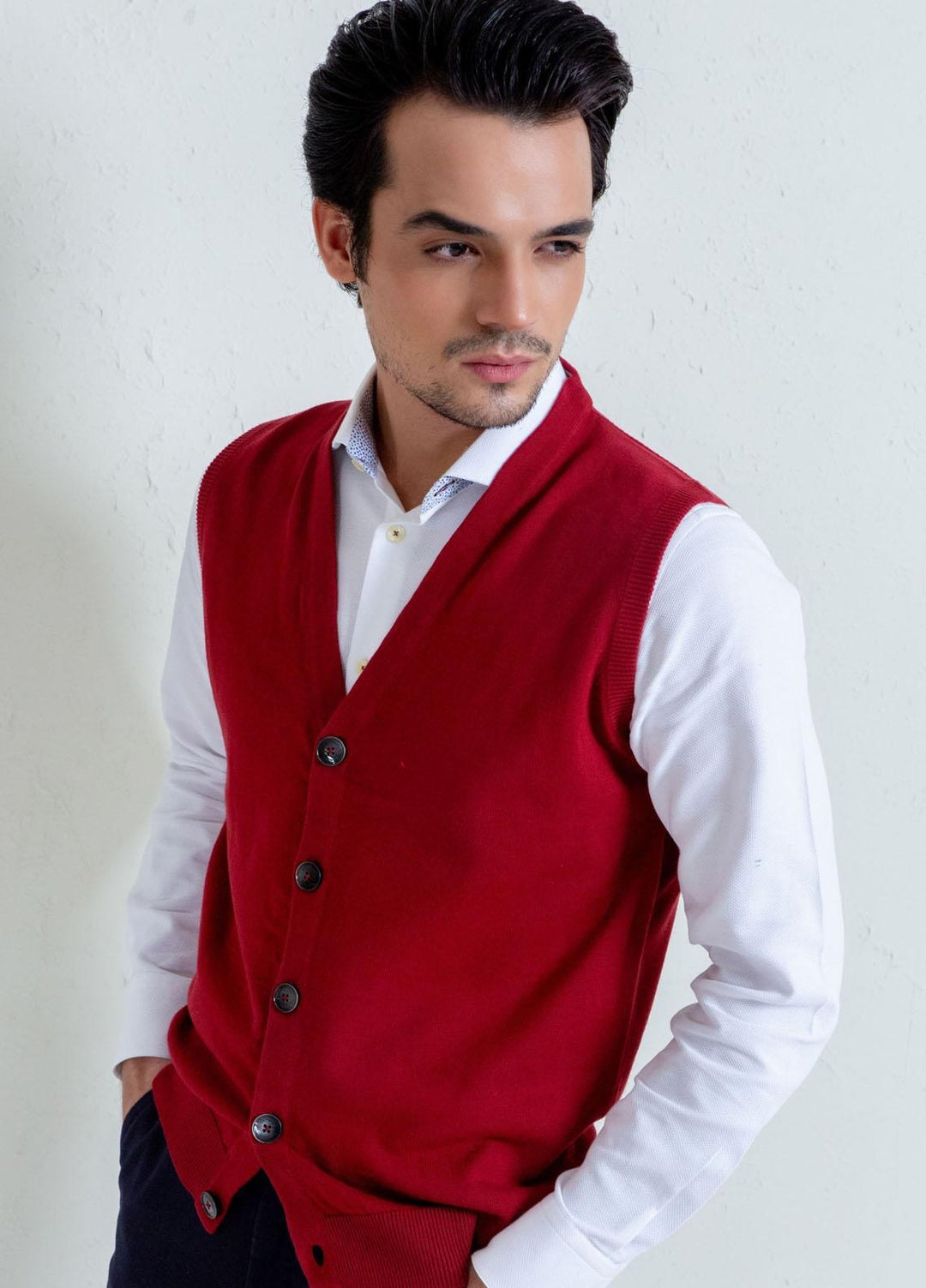 Brumano Cotton Casual Sweaters for Mens - Maroon Sleeveless Button Cardigan