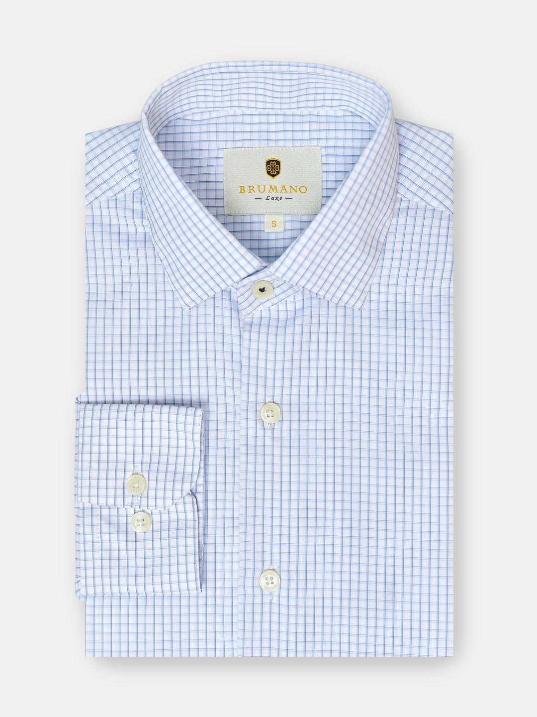 Brumano Ready To Wear Shirts Men 1 Piece Cotton Sky Blue Windowpane Checkered Shirt Luxe 0-32-025-0921 - Summer Collection