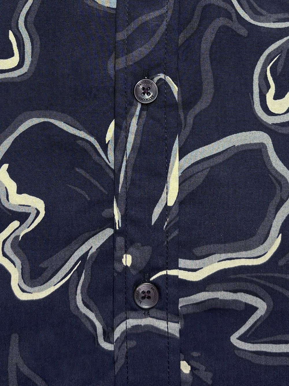 Brumano Ready To Wear Shirts Men 1 Piece Cotton Navy Blue & White Motif Printed Shirt 0-32-024-3182 - Summer Collection