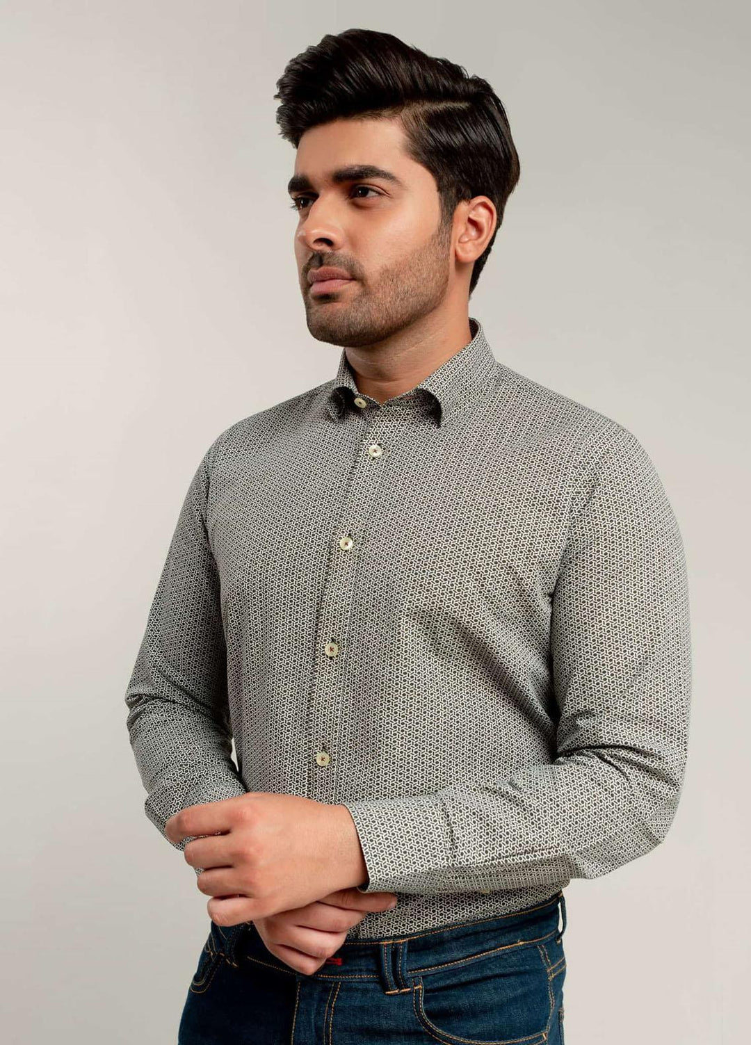 Brumano Cotton Formal Shirts for Men - BM20SH Black & White Geometric Printed Shirt