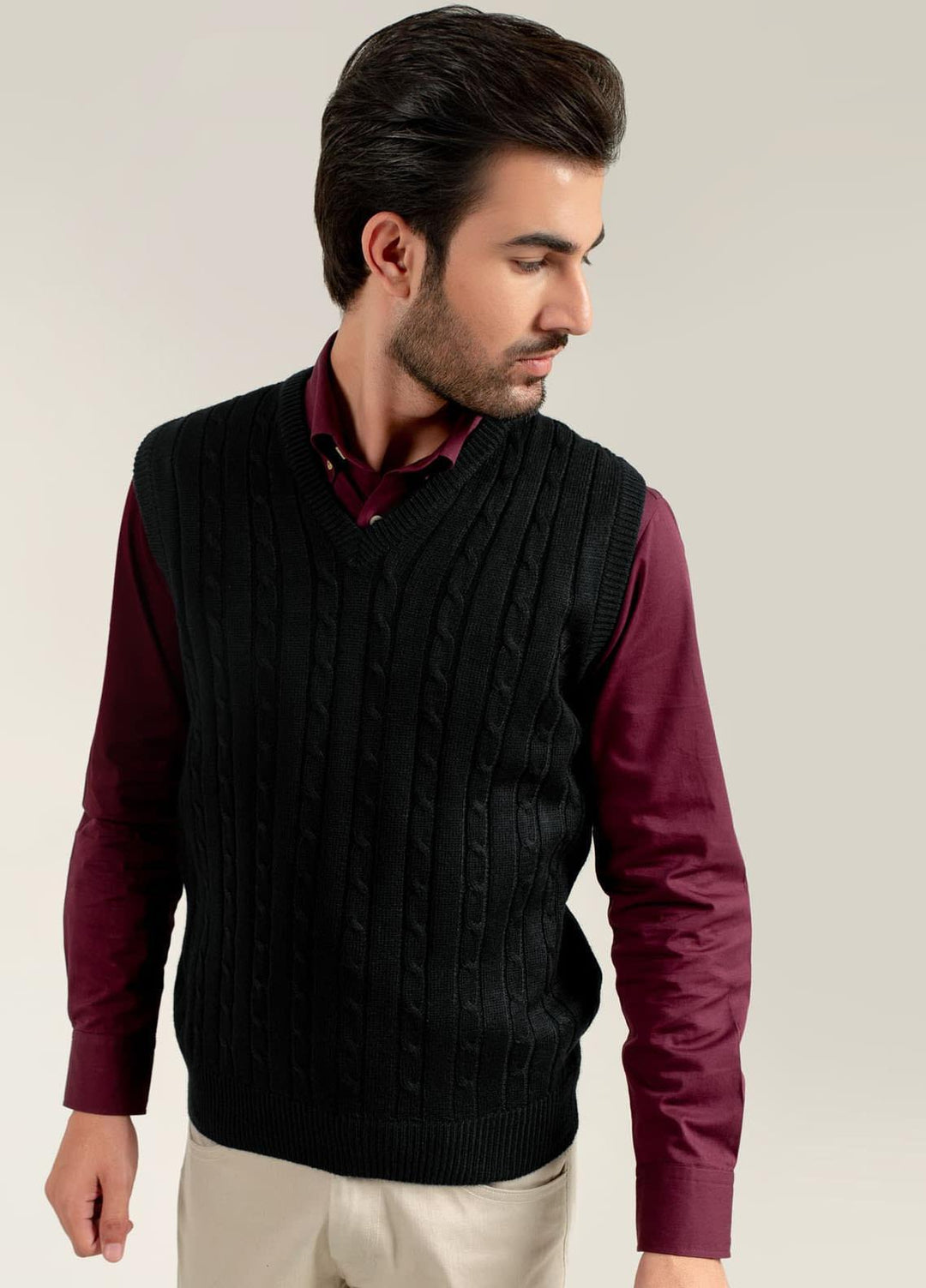 Brumano Acrylic Sleeveless Sweaters for Men - BM20WS Maroon Sleeveless Cable Knitted Sweater