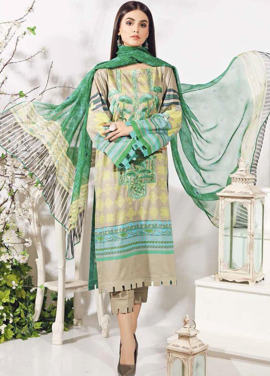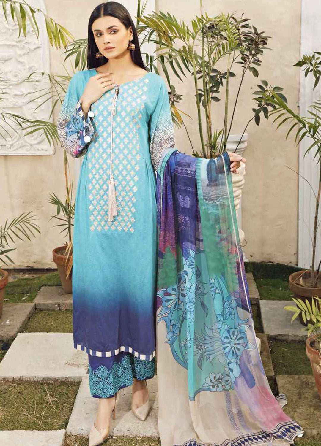 Charizma chiffon is always loved by their customers who are purchasing their chiffon since they are designed to meet the needs and requirements of their dependable customers. This brand has built up an association with each one of their customers since they satisfy their needs. This collection is exceptionally flawless and incredible. It includes a 3 piece suit with embroidery on the shirt, a net duppata, and a raw silk plan trouser.