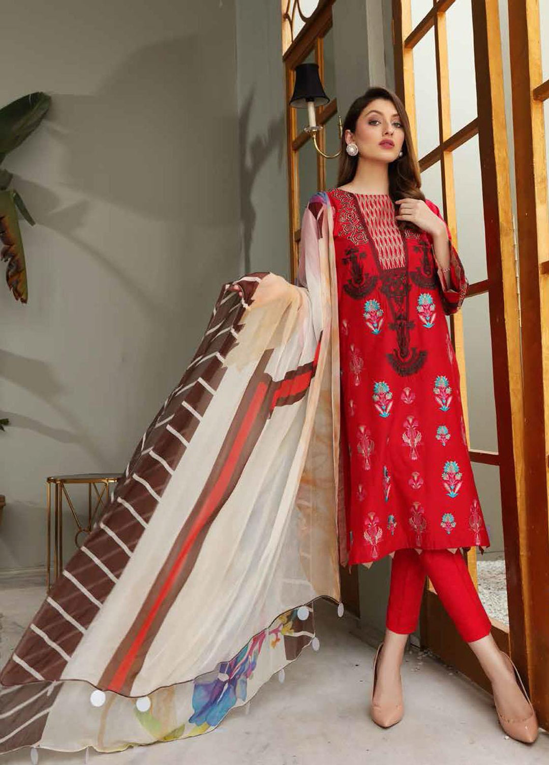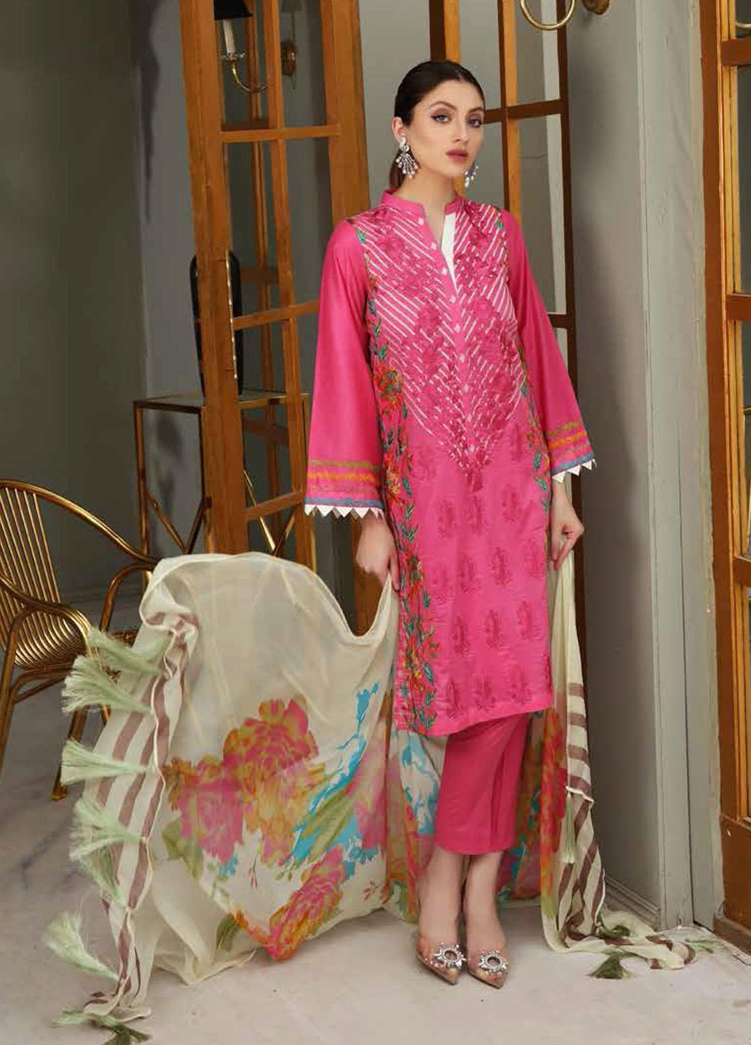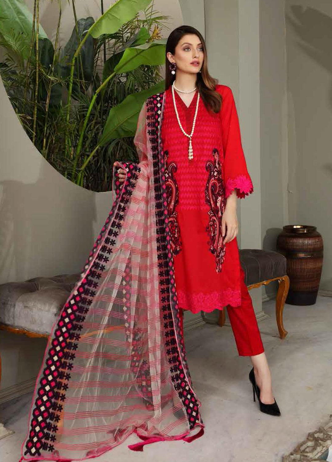 Charizma chiffon is always loved by their customers who are purchasing their chiffon since they are designed to meet the needs and requirements of their dependable customers. This brand has built up an association with each one of their customers since they satisfy their needs. This collection is exceptionally flawless and incredible. It includes a 3 piece suit with embroidery on the shirt, a net duppata, and a raw silk plan trouser.