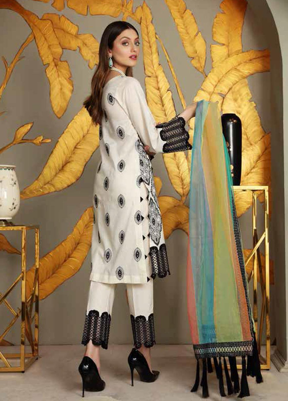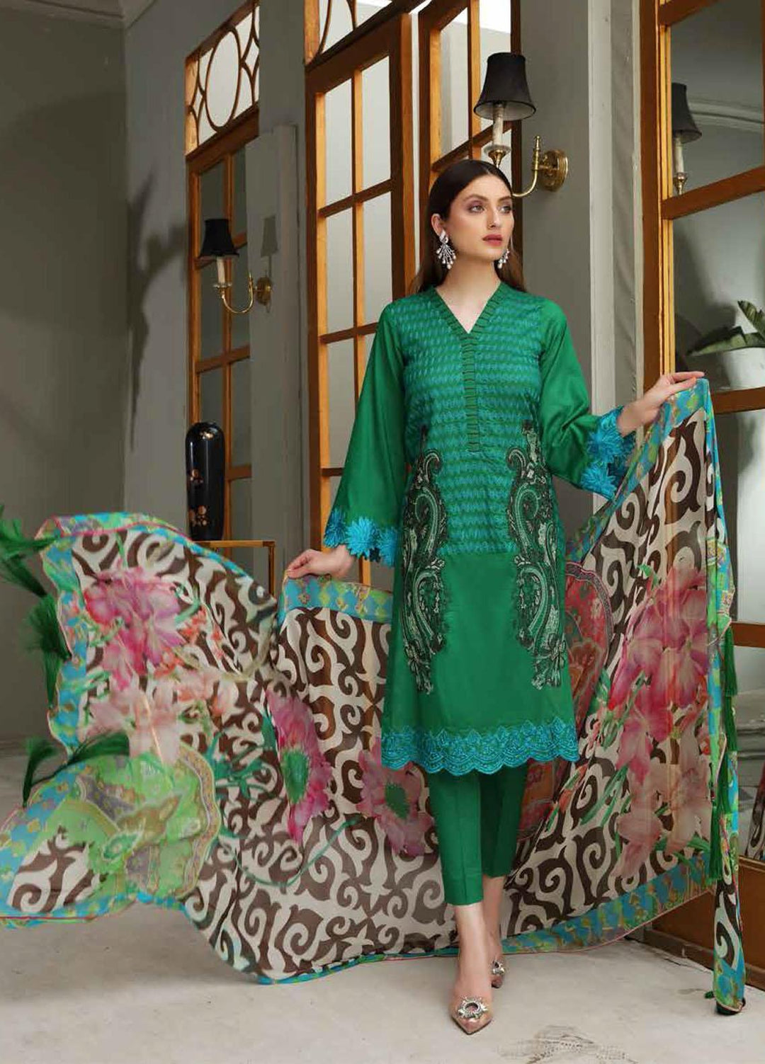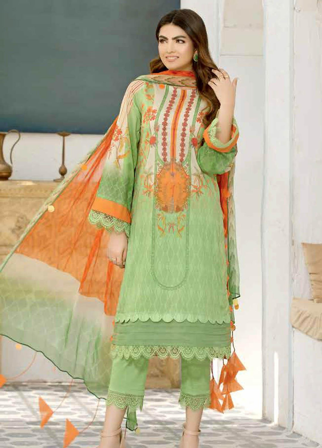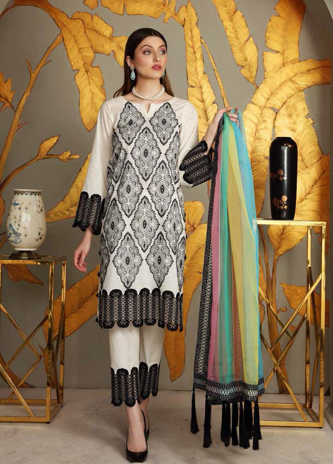 Charizma chiffon is always loved by their customers who are purchasing their chiffon since they are designed to meet the needs and requirements of their dependable customers. This brand has built up an association with each one of their customers since they satisfy their needs. This collection is exceptionally flawless and incredible. It includes a 3 piece suit with embroidery on the shirt, a net duppata, and a raw silk plan trouser.