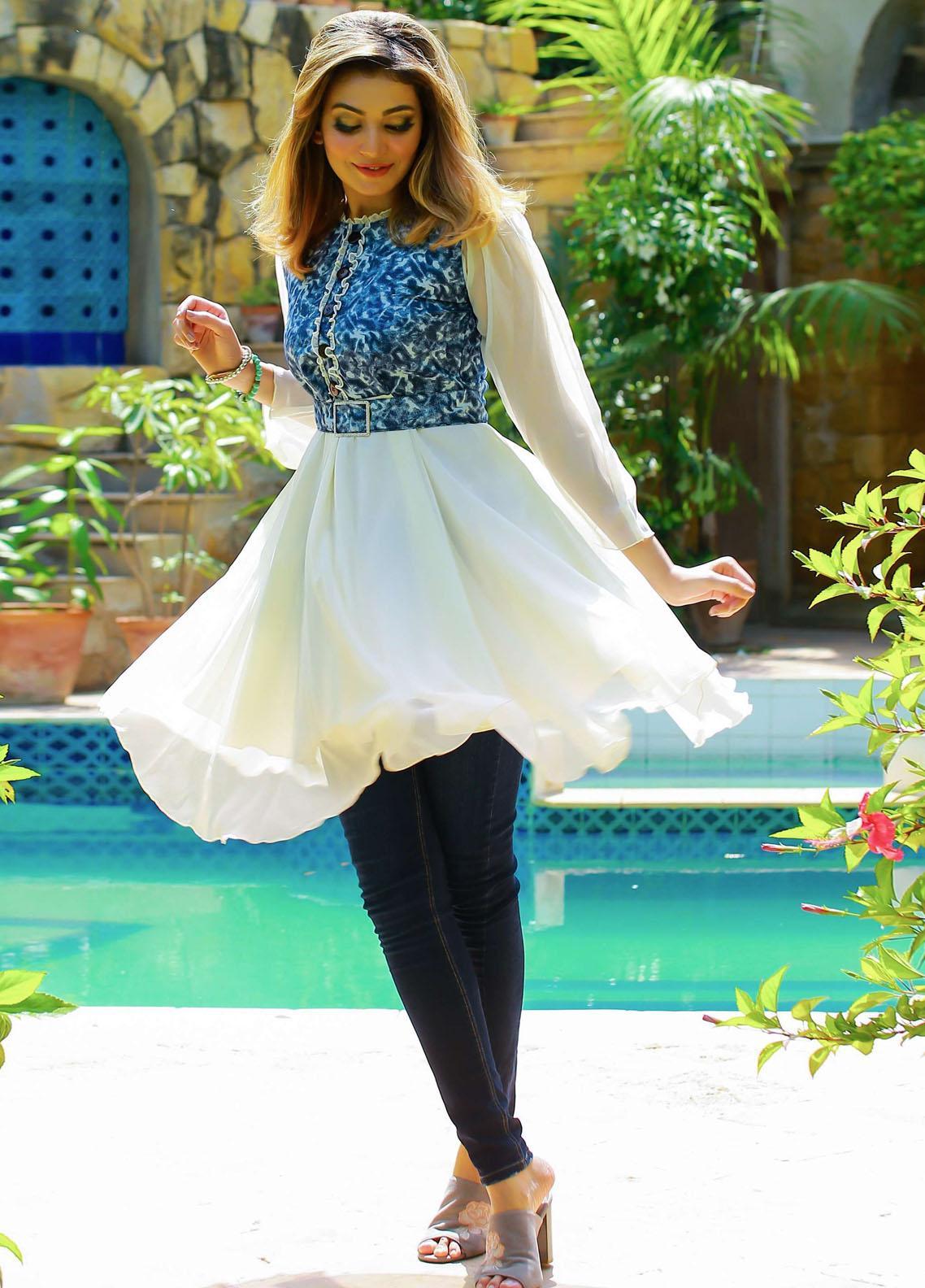 Modest Pret Chiffon Kurti Mystic Vanilla - W14-Cream Blue