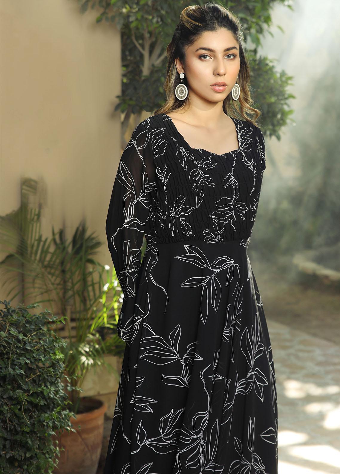 Nazmina Pret Casual Chiffon Shirt NZ22RW FR-537 Monochromatic Florals