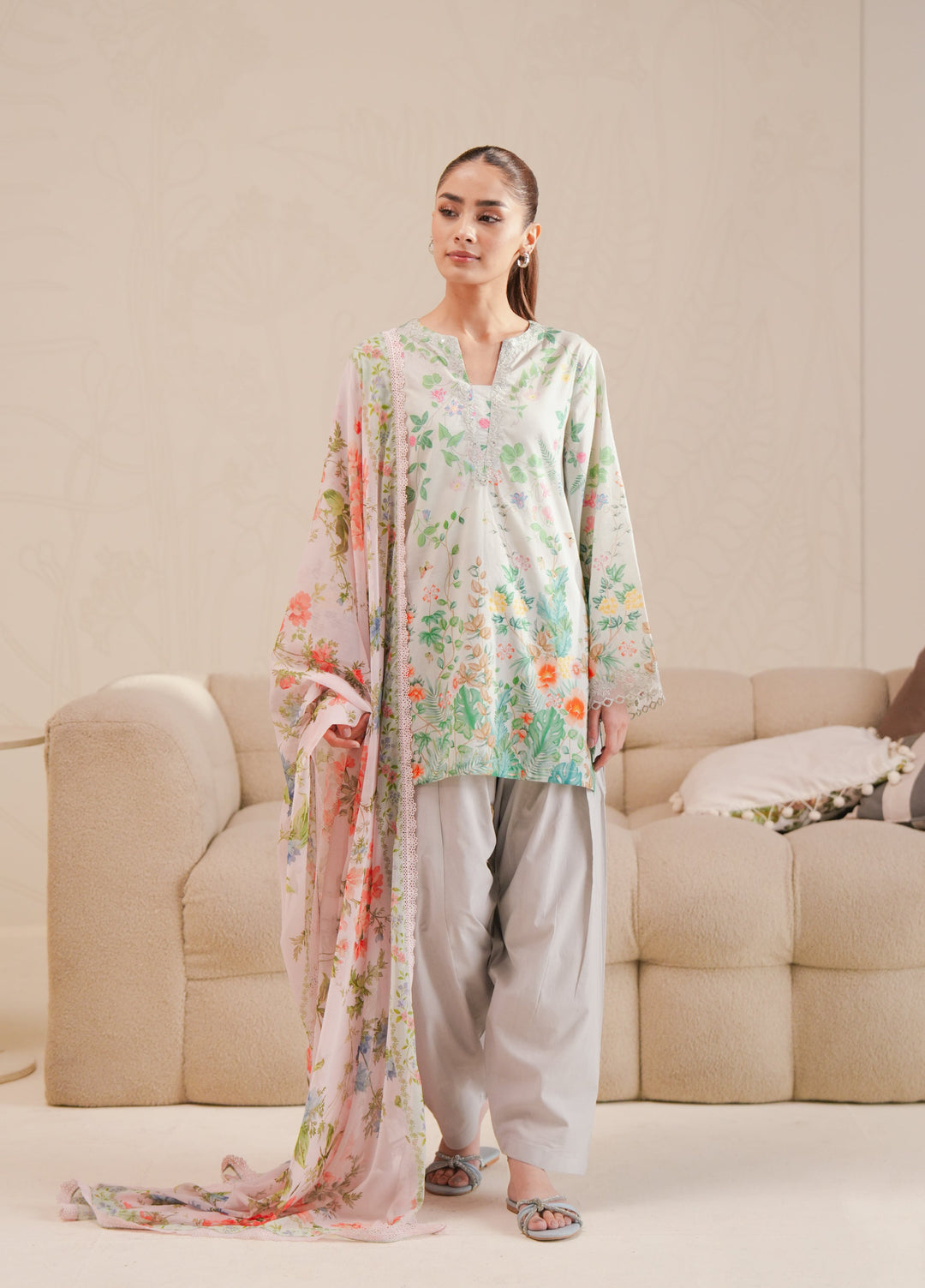 Ladies hold your seats tight the beast has just hit the market. This collection is full of colors and the sweet fragrance of flowers with lush green grass that will give you a fresh and alive atmosphere. It has created with the combination of both spring and summer colors the dresses are in the soft and light and both shaded. This collection has a digital printed shirt, digital print floral printed dupatta and cigarette pant which gives you a completely different and the most elegance style.