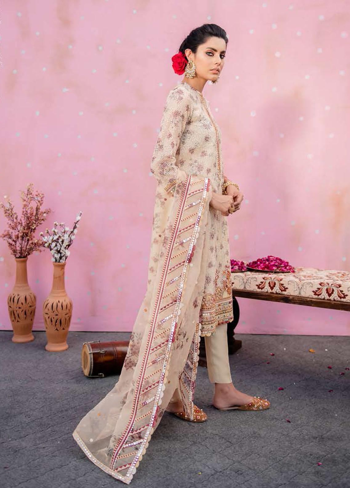 Luxe Atelier By Cross Stitch Embroidered Net Suits Unstitched 4 Piece CS22LX 03 ETHEREAL BISQUE - Luxury Collection