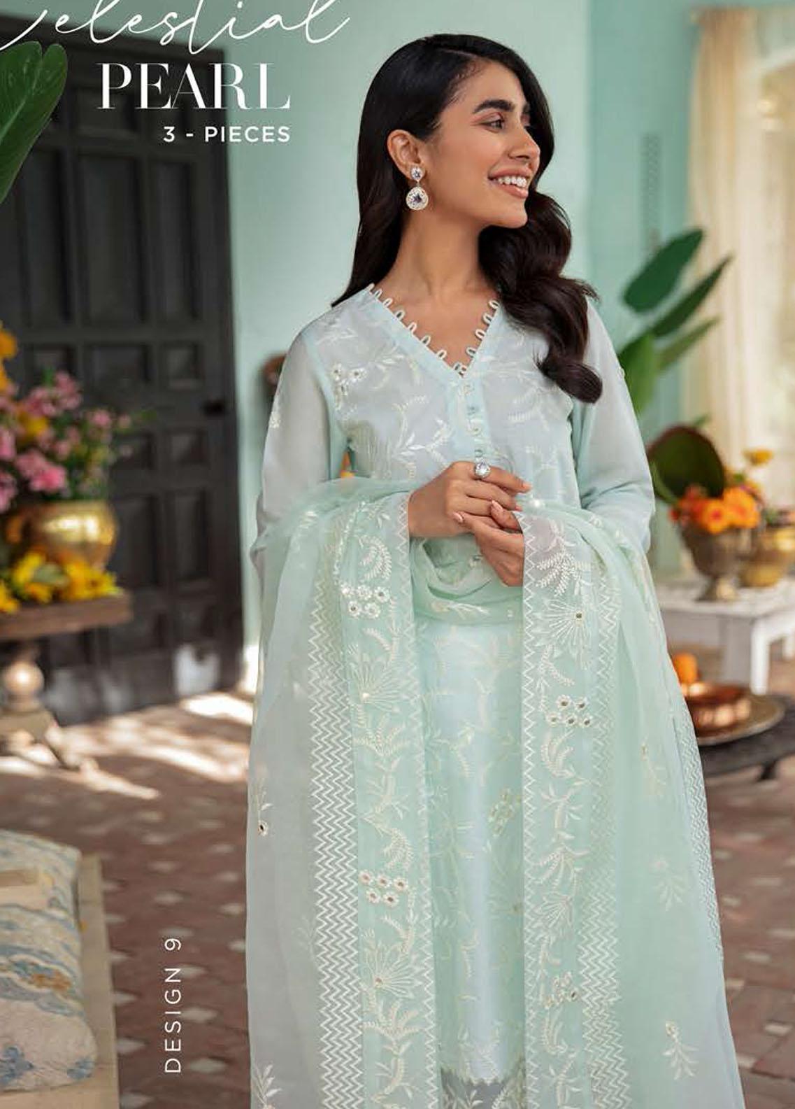 Mehrbano By Cross Stitch Embroidered Lawn Suits Unstitched 3 Piece CS22ME 09 CELESTIAL PEARL - Premium Collection