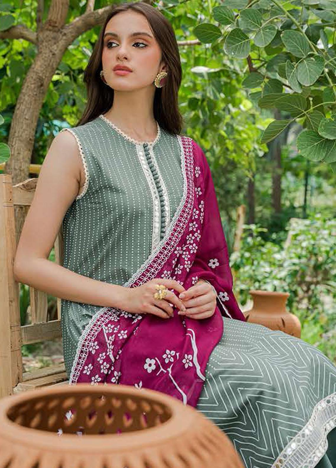 Seher By Cross Stitch Embroidered Cambric Suits Unstitched 3 Piece CS22S 05 Chromatic Green - Premium Collection