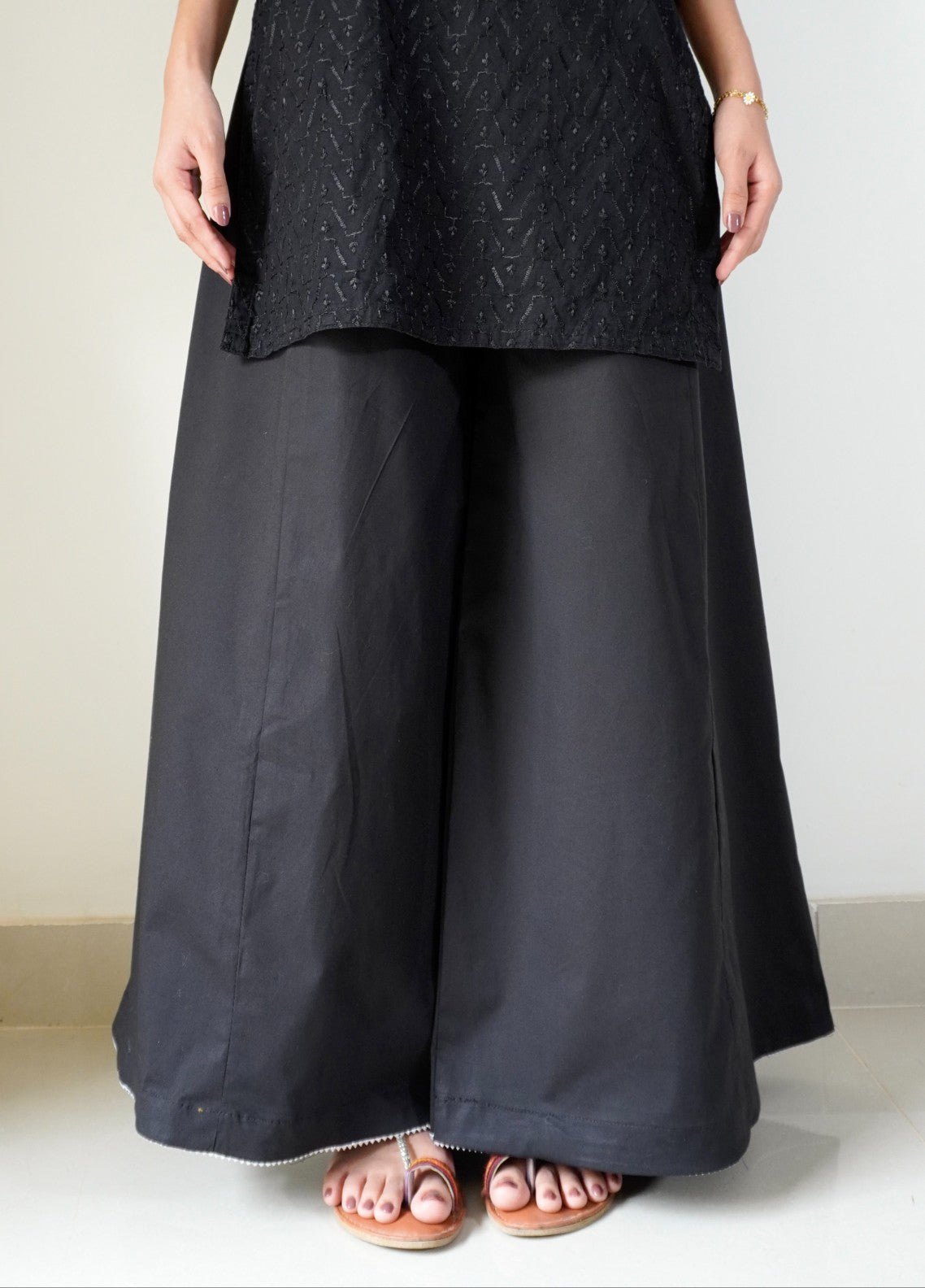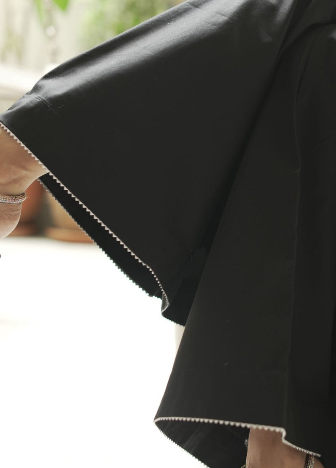 Flared cotton ijaar with a silver kikri lace on the painchas, perfect to pair with long and short tops.