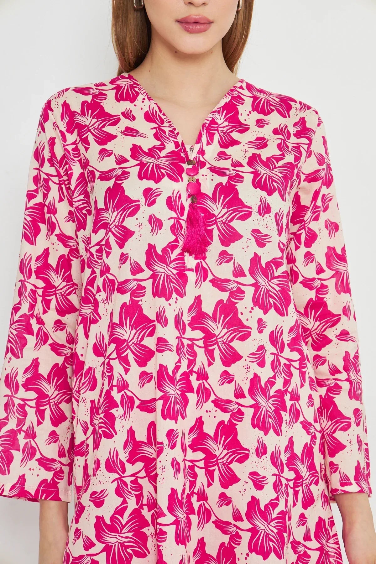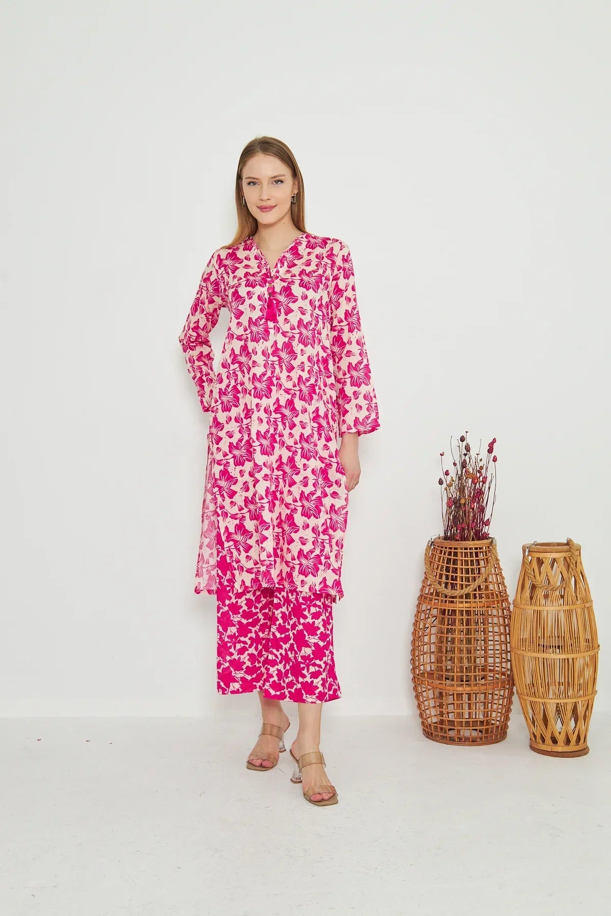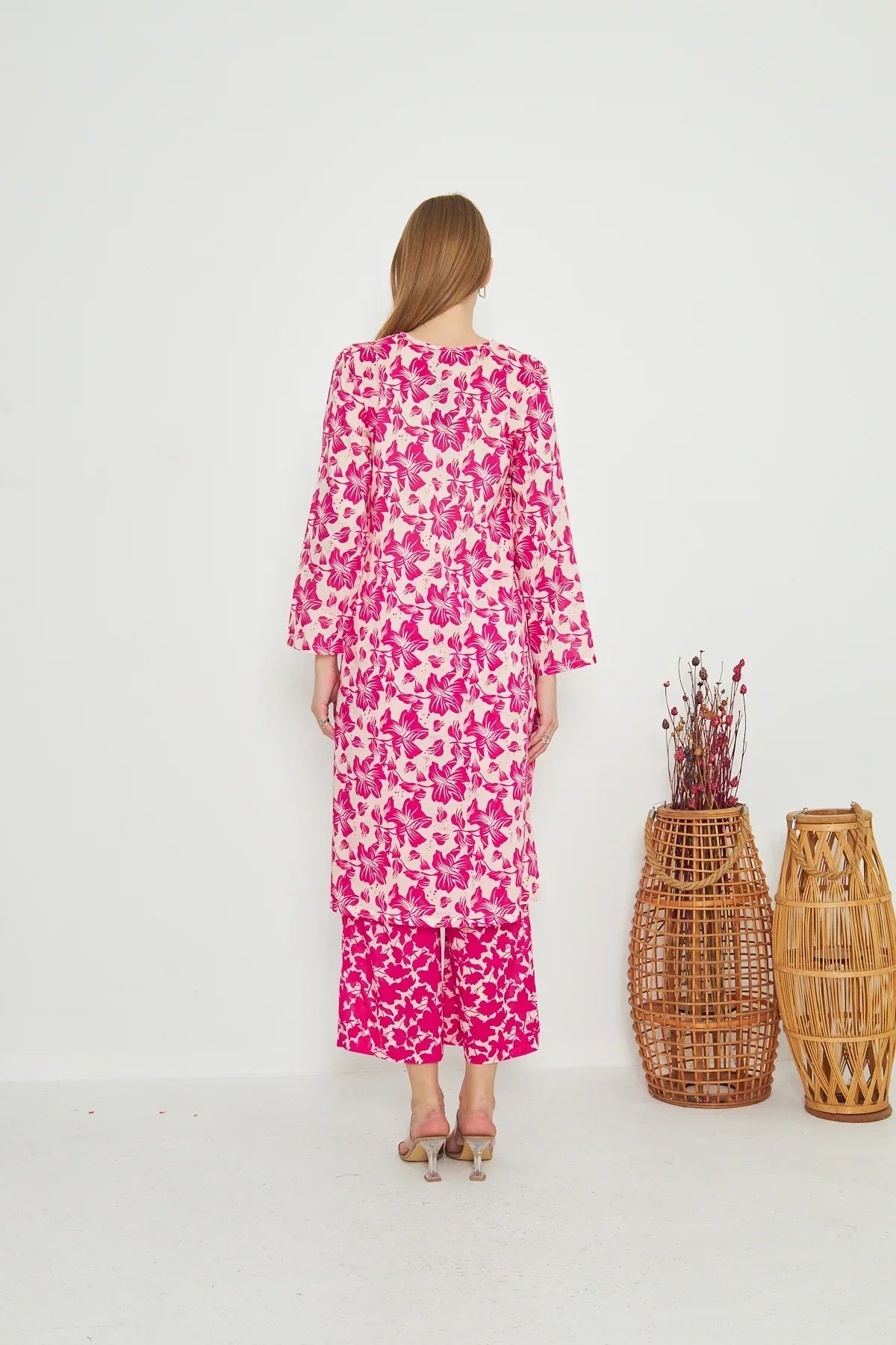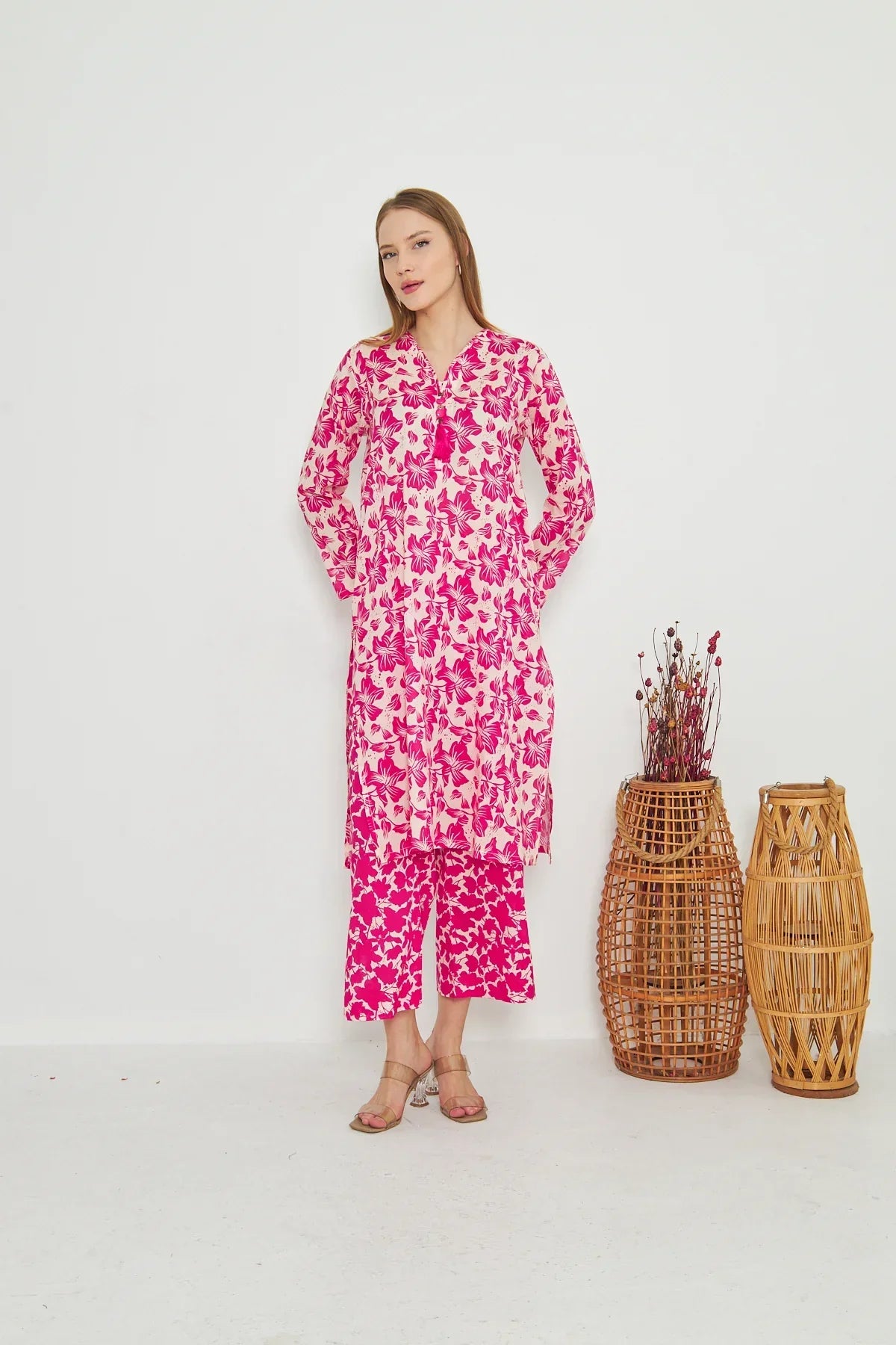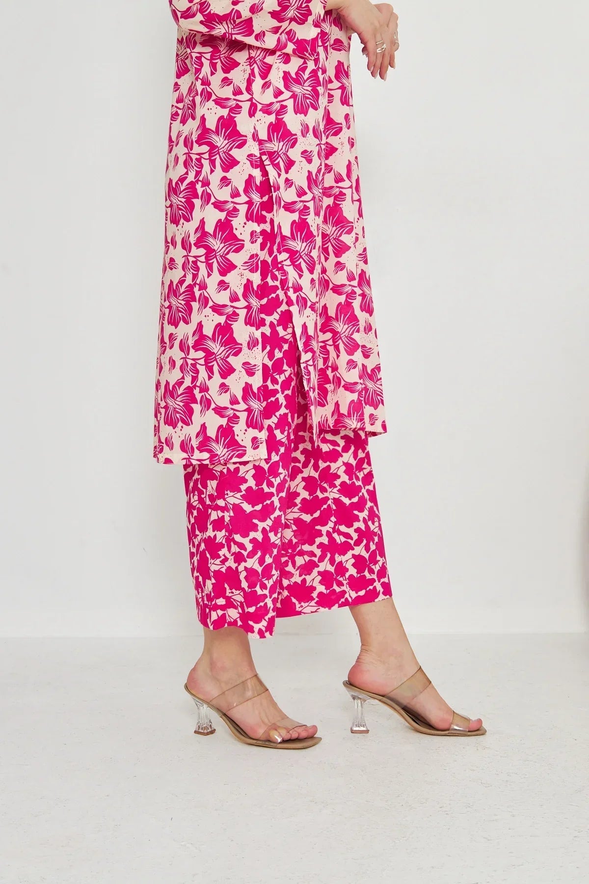 The radiant ensemble offers a unique and stylish look for any special occasion. This 2-piece suit features a chic contemporary long shirt with minimal prints. The printed trousers make it a trendy outfit to style at fun gatherings.