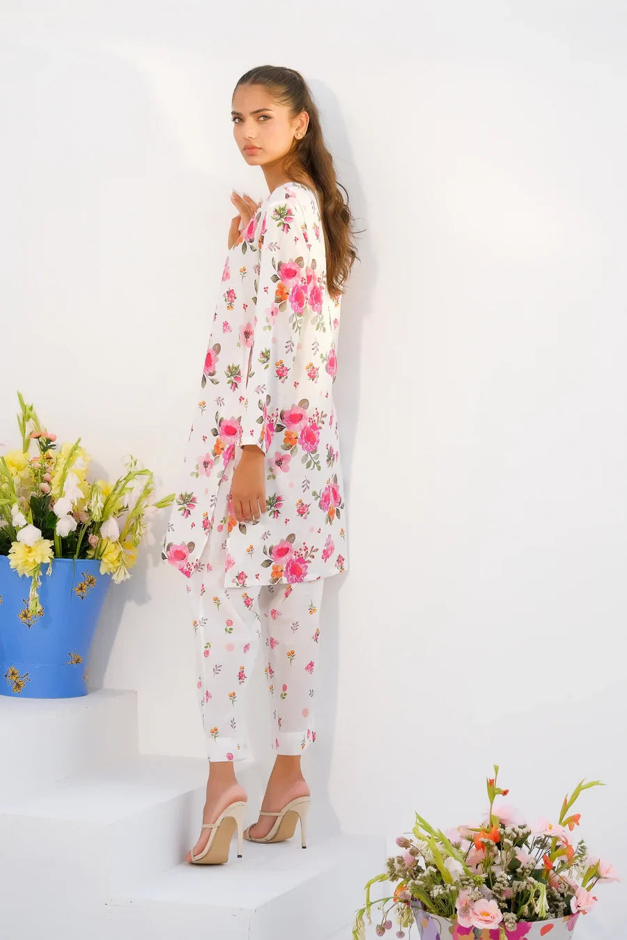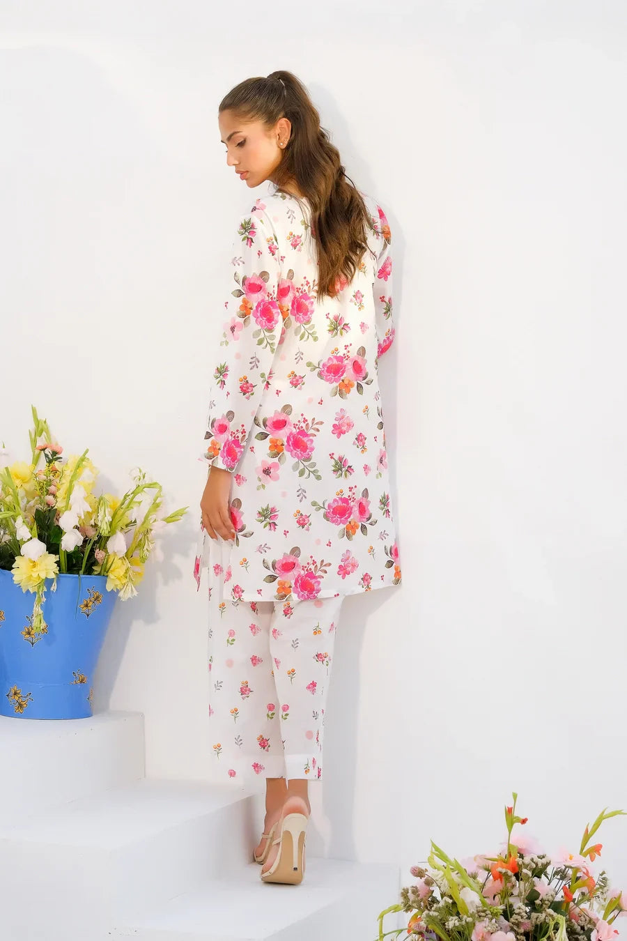 Step up your wardrobe with our exquisite printed Matching separates. This stunning 2-pc enhances intricate button detailing on the neckline of the shirt with convenient side pockets, and perfectly paired trousers.