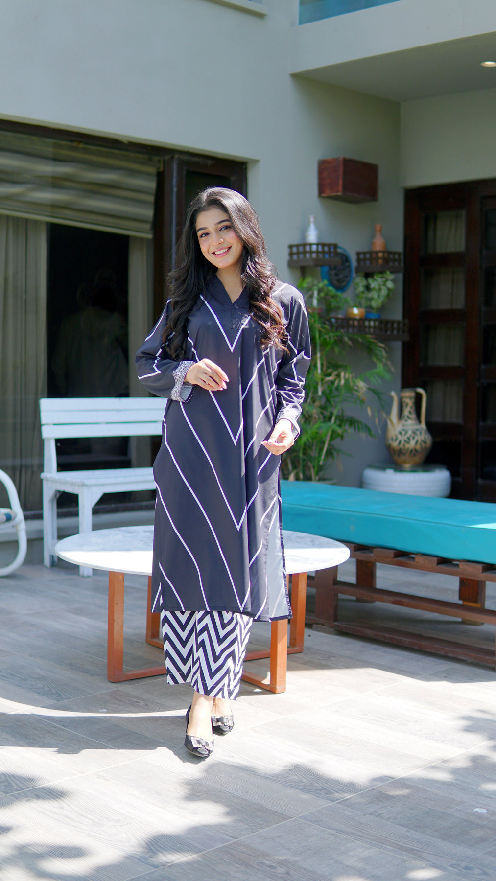 This 2 piece printed-colored features luxurious and comfortable fabric and impeccable cuts given to every detail of the article, offering versatility and sophistication for any occasion.