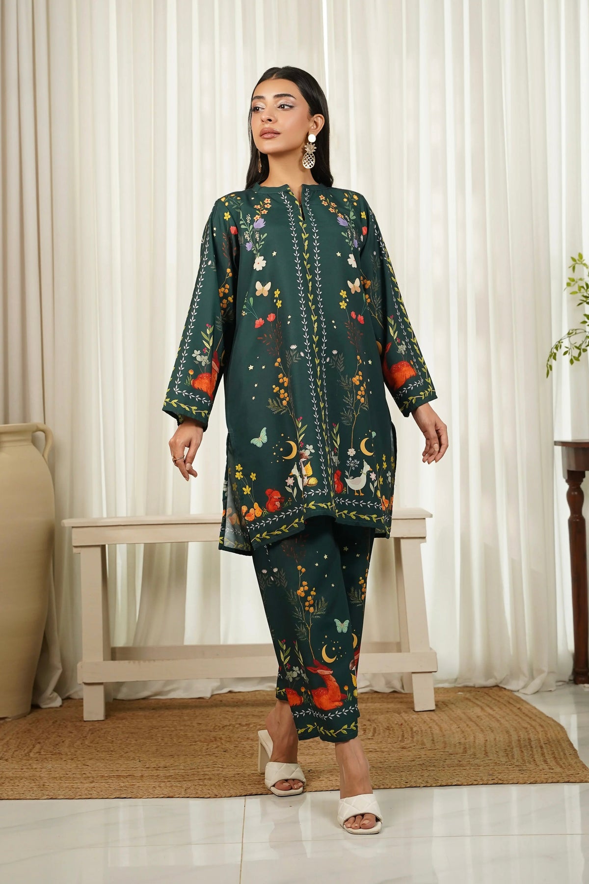 This 2 piece printed-colored co-ord set features luxurious and comfortable fabric and impeccable cuts given to every detail of the article, offering versatility and sophistication for any occasion.