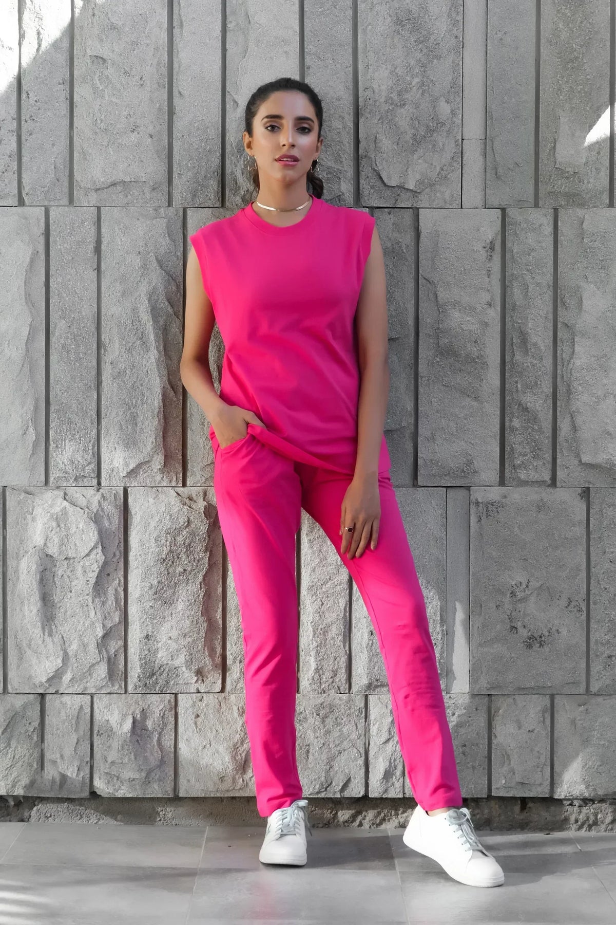 Fushia Summer Co Ords - Sleevesles T-Shirt with Trouser