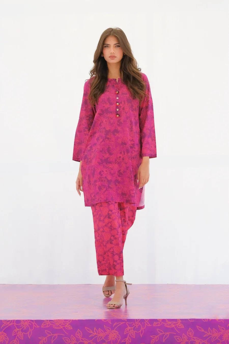Step up your wardrobe with our exquisite printed Matching separates. This stunning 2-pc enhances intricate button detailing on the neckline of the shirt with convenient side pockets, and perfectly paired trousers.