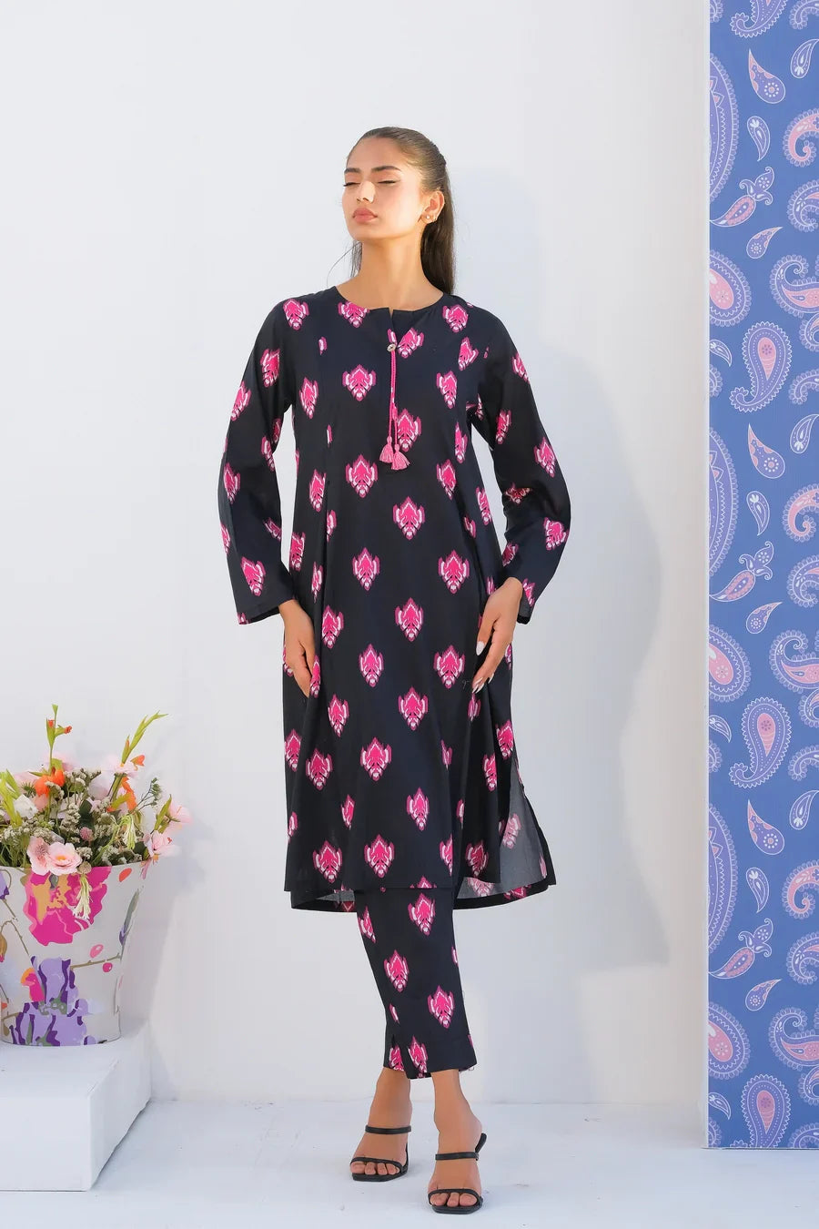 Step up your wardrobe with our exquisite printed Matching separates. This stunning 2-pc enhances intricate button detailing on the neckline of the shirt with convenient side pockets, and perfectly paired trousers.