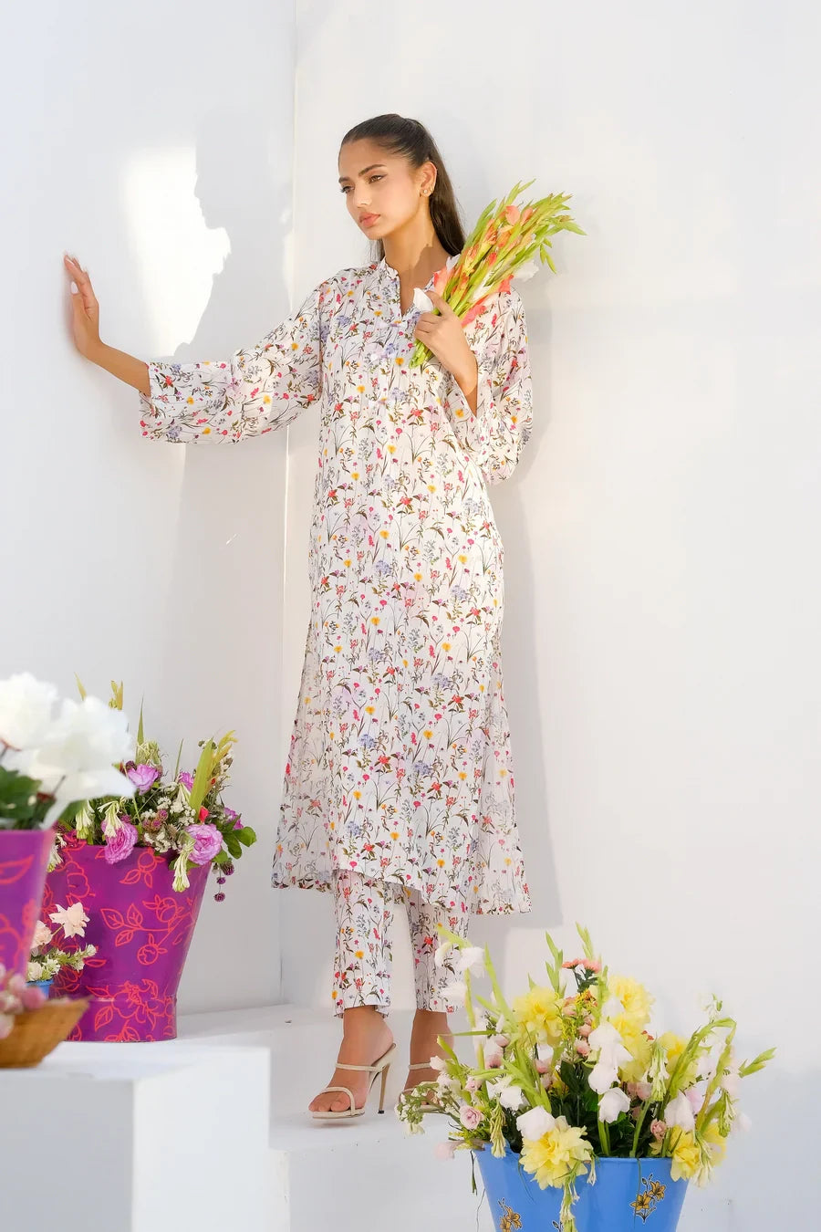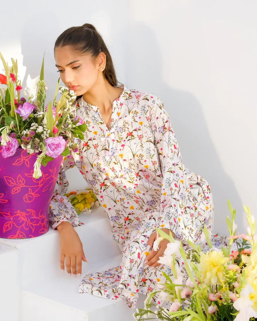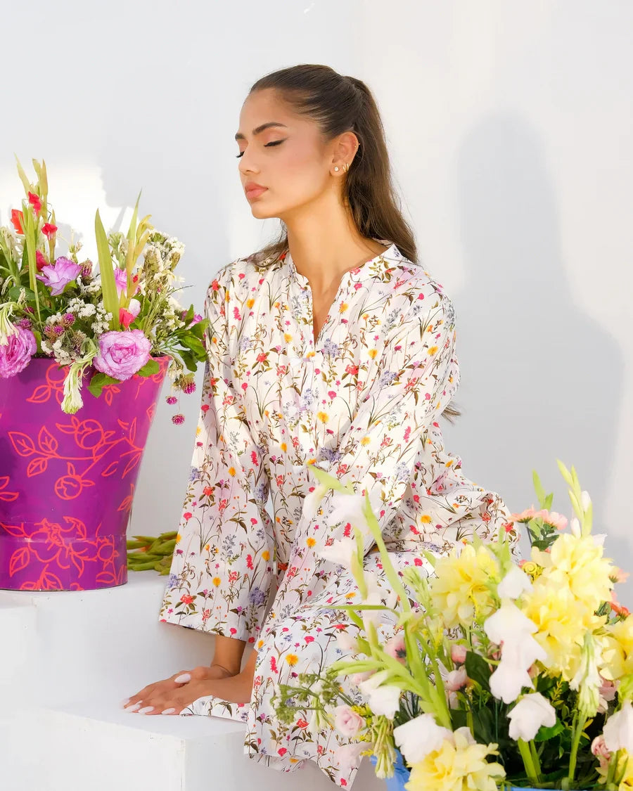 Step up your wardrobe with our exquisite printed Matching separates. This stunning 2-pc enhances intricate button detailing on the neckline of the shirt with convenient side pockets, and perfectly paired trousers.