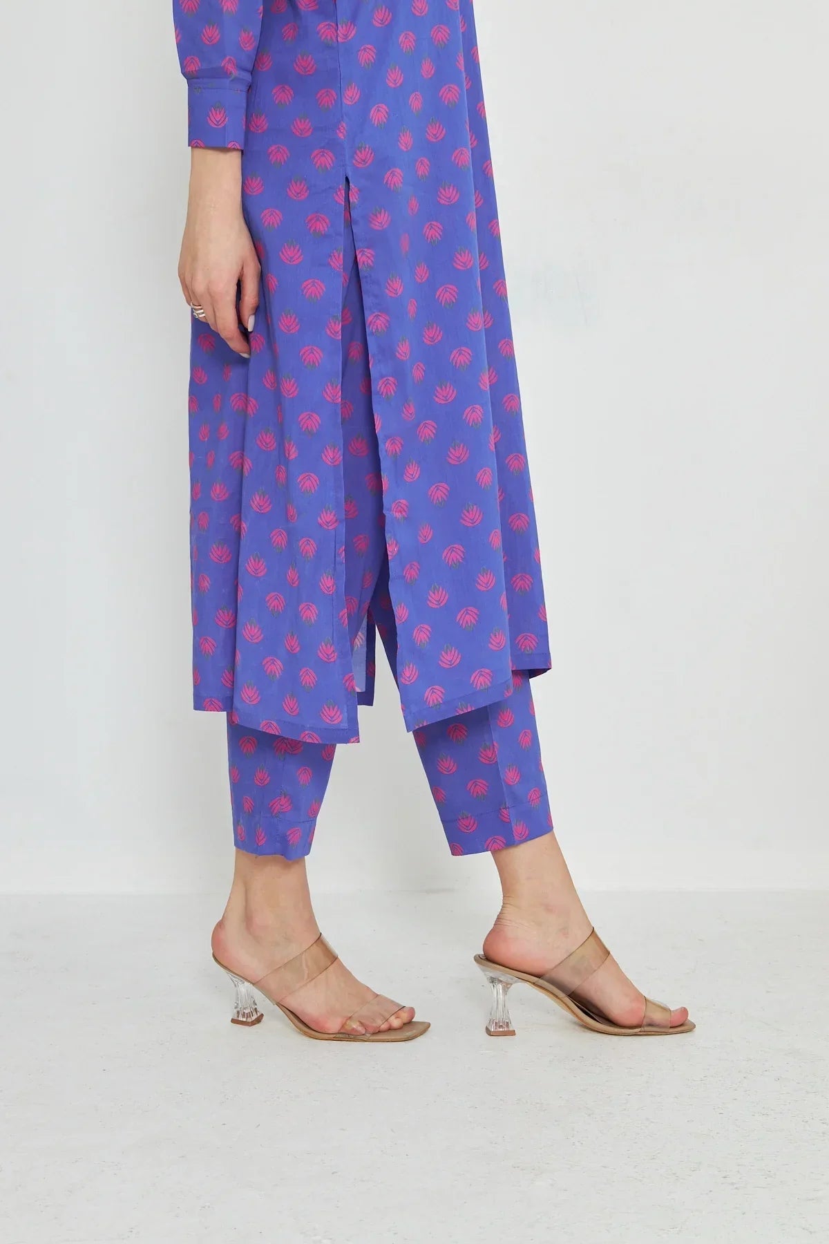The radiant ensemble offers a unique and stylish look for any special occasion. This 2-piece suit features a chic contemporary long shirt with minimal prints. The printed trousers make it a trendy outfit to style at fun gatherings.