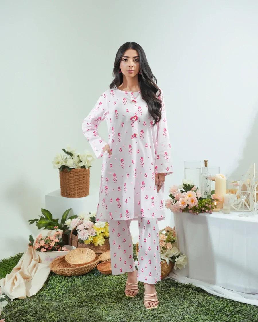 Step up your wardrobe with our exquisite printed Matching separates. This stunning 2-pc enhances intricate button detailing on the neckline of the shirt with convenient side pockets, and perfectly paired trousers.