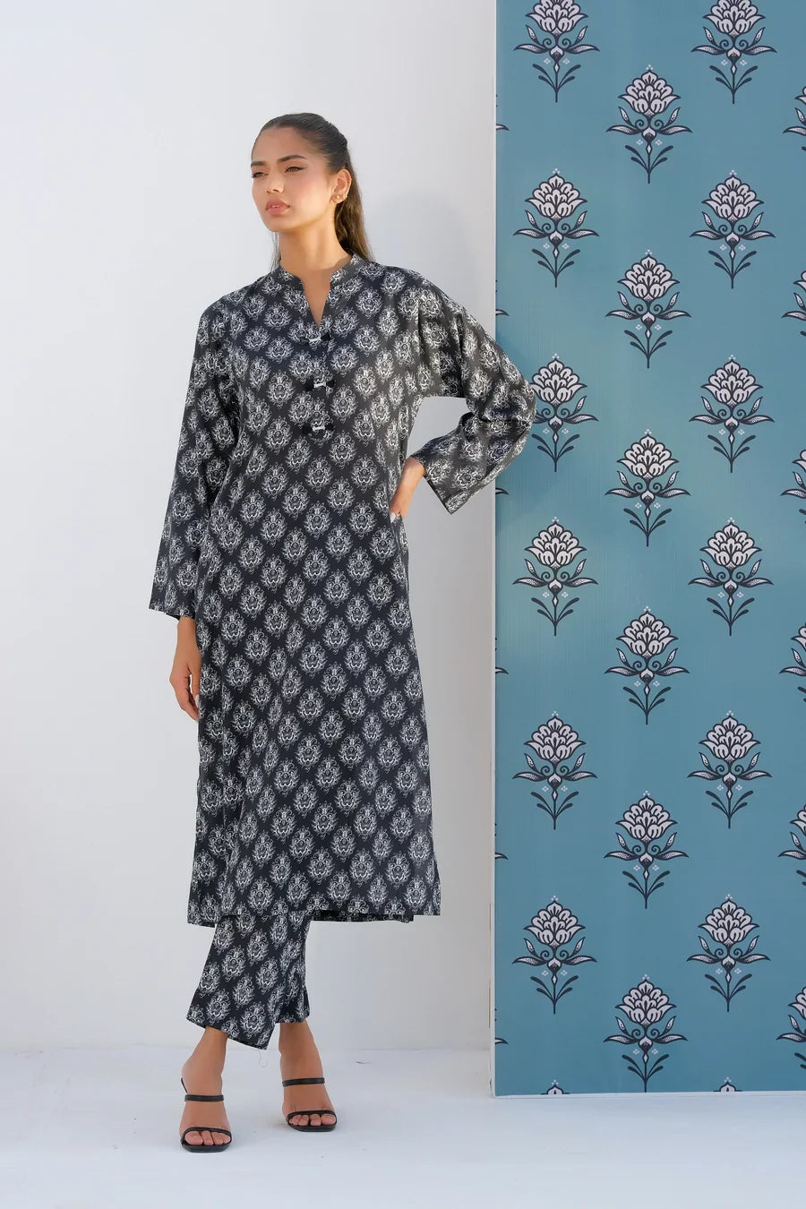 Step up your wardrobe with our exquisite printed Matching separates. This stunning 2-pc enhances intricate button detailing on the neckline of the shirt with convenient side pockets, and perfectly paired trousers.