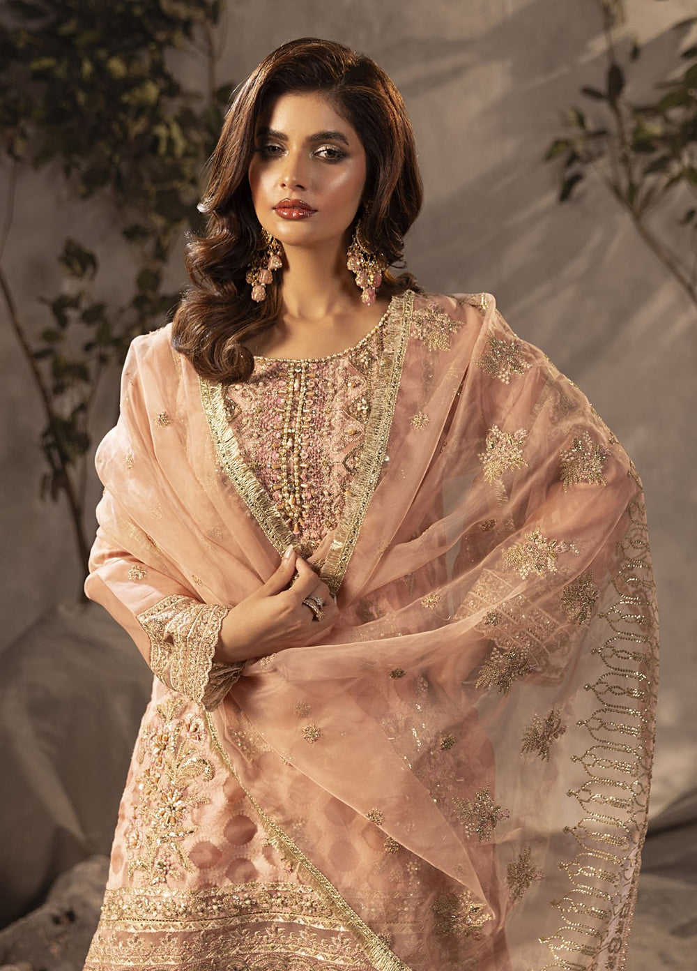 Diara Couture Pret Embroidered Gharara Organza 3 Piece Suit US-493 Peach