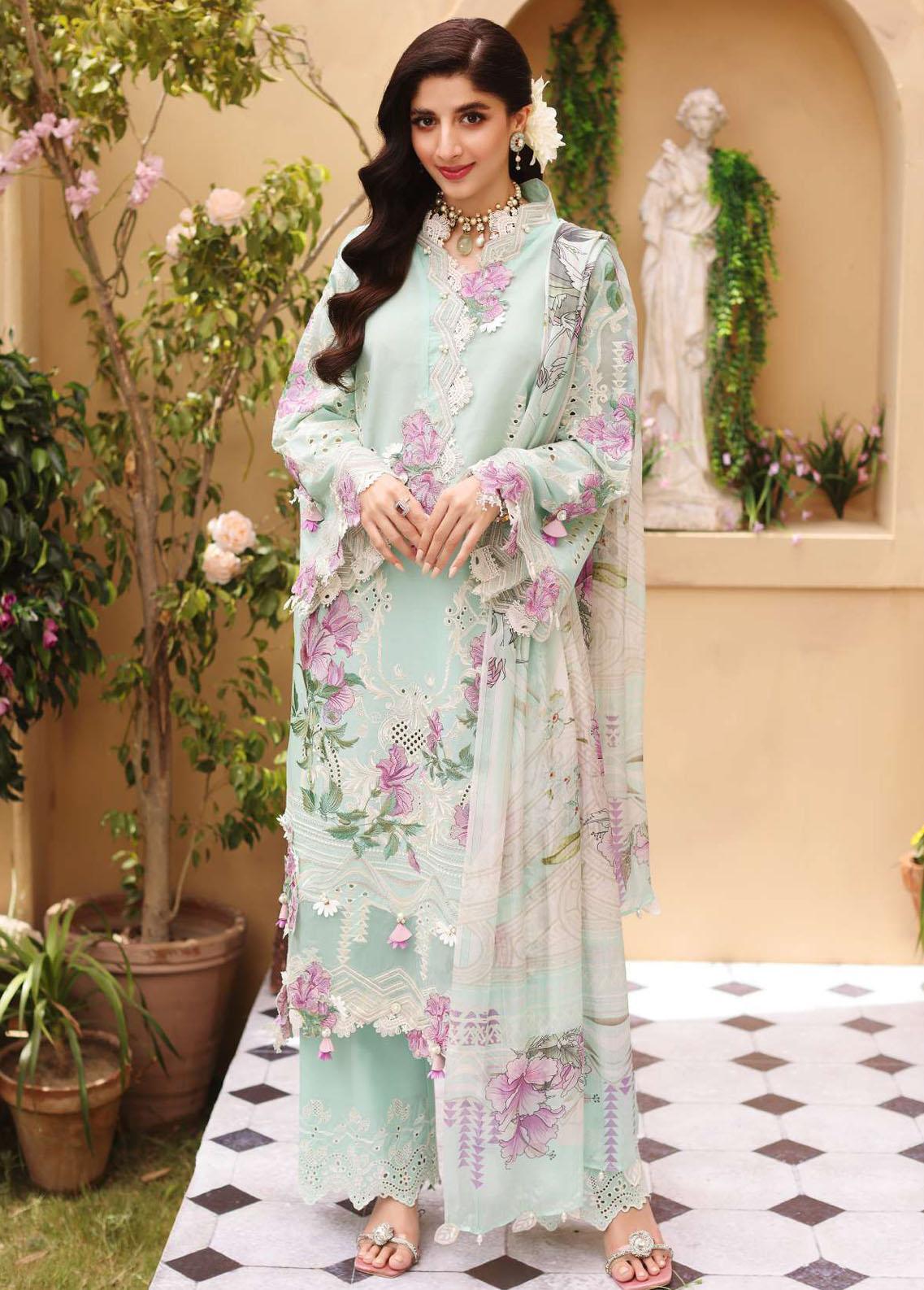 Elaf Embroidered Lawn Suits Unstitched 3 Piece EL22FL ELF-02 Aqua - Festive Collection
