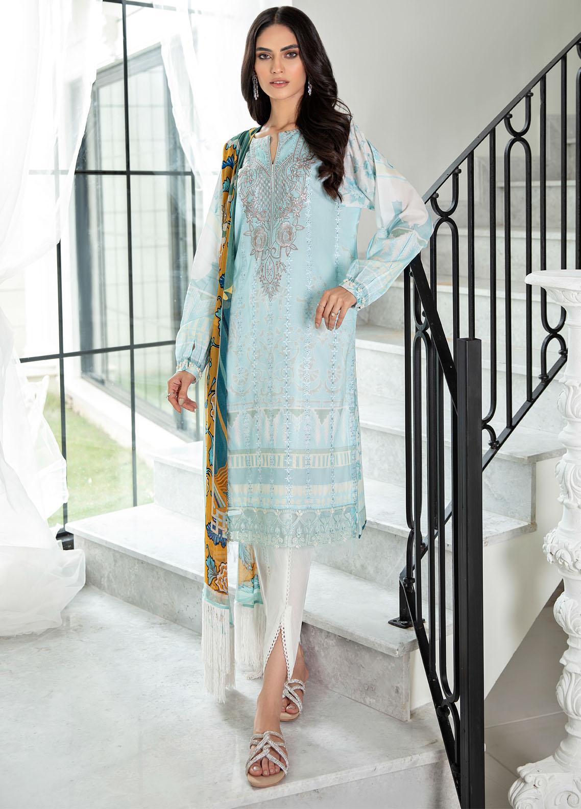 Iznik Embroidered Lawn Suits Unstitched 3 Piece IZ21EF 03 Ice Blue - Festive Collection