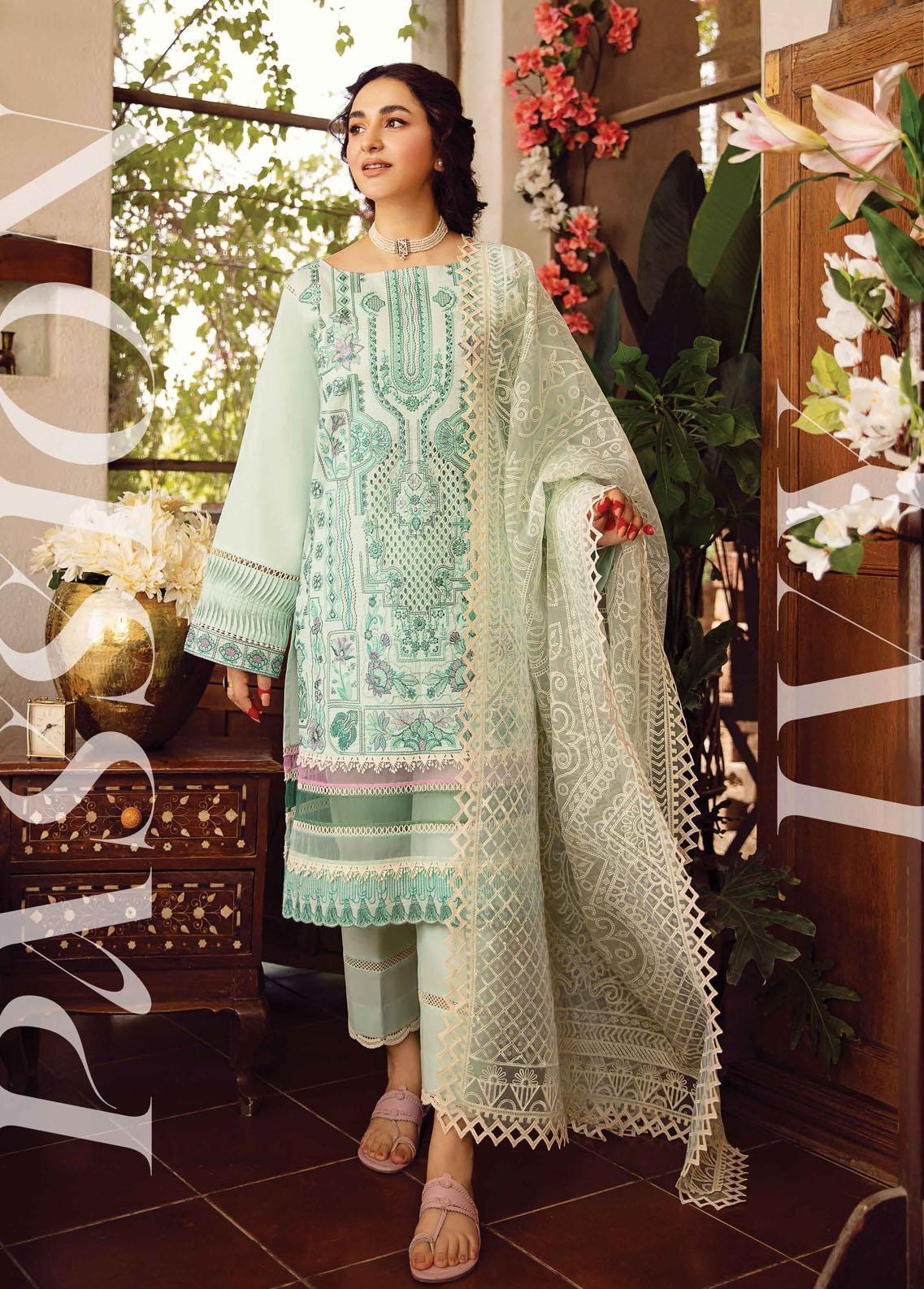 Maskan By Rang Rasiya Embroidered Lawn Suits Unstitched 3 Piece RR22M 14 Passion Ivy - Eid Collection