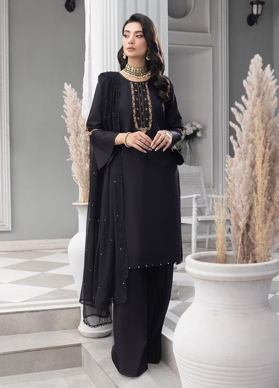 Merakish By Shahzeb Textiles Embroidered Jacquard Suits Unstitched 3 Piece ST23MKJ Metal Black - Festive Collection