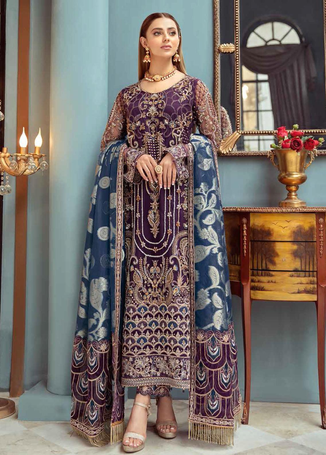 Ramsha Embroidered Net Suits Unstitched 3 Piece RSH22WD H-101 - Wedding Collection