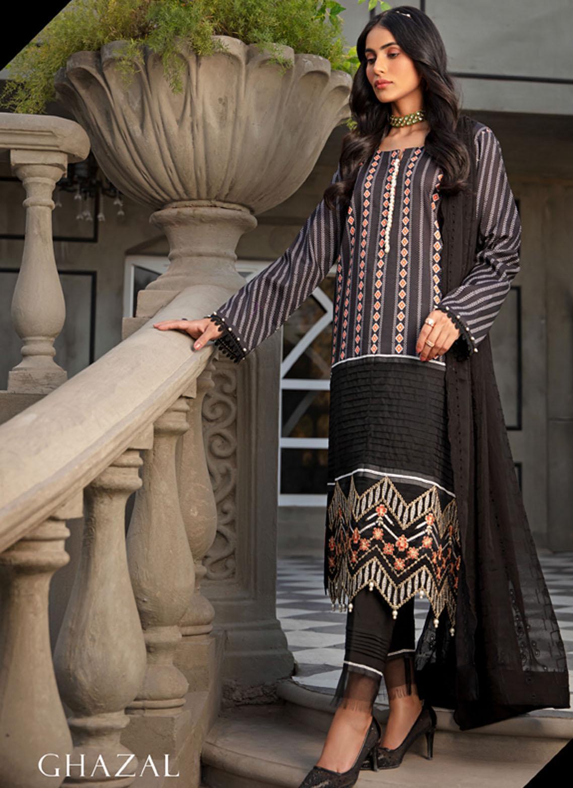 Sanaya Embroidered Lawn Suits Unstitched 3 Piece SNY21L Ghazal - Luxury Collection