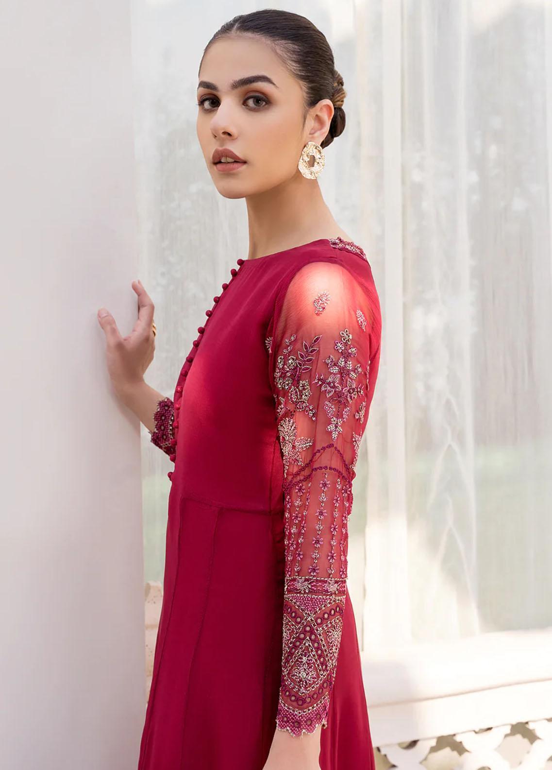 Embroidered Chiffon Gown, Embroidered Chiffon Shawl, Raw Silk Trousers